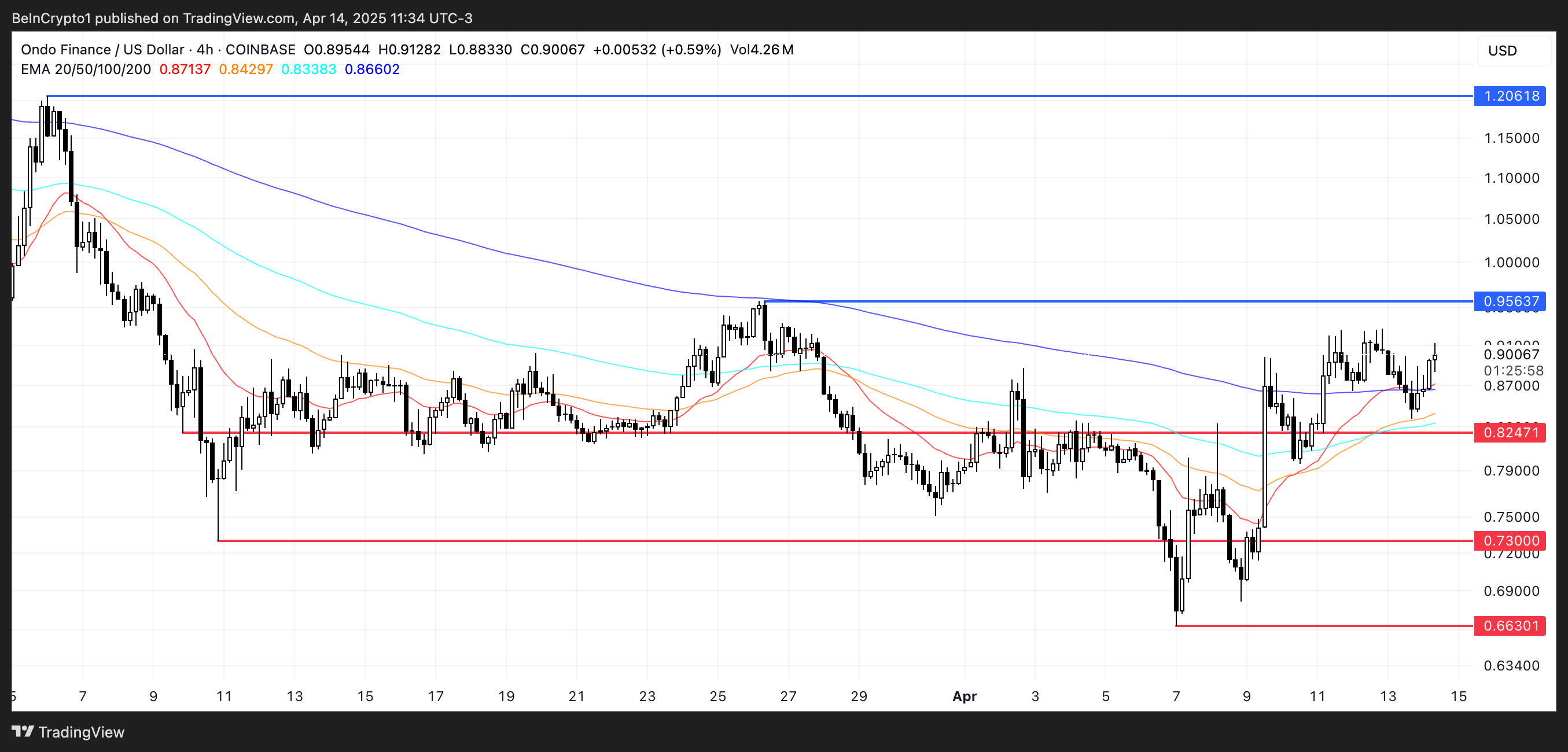 Лінії EMA ONDO щойно сформували золотий хрест, бичачий сигнал, який часто означає початок нового висхідного тренду.