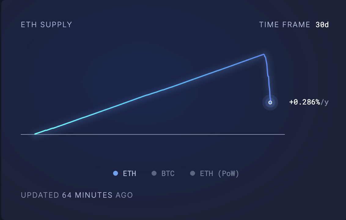 Це довгоочікуване оновлення мережі, яке підвищує ліміти валідаторів до 2048 ETH, дозволяє використовувати смарт-гаманці та підвищує ефективність мережі, спричинило сплеск активності в мережі, що призвело до зменшення пропозиції ETH на тлі зростання попиту користувачів.