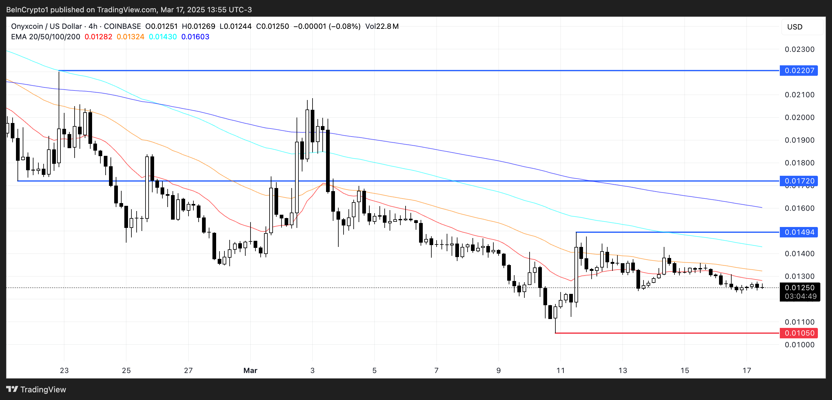 Якщо Onyxcoin відновить імпульс, він може кинути виклик опору на рівні 0,0149 долара, а прорив може підштовхнути ціну до 0,017 долара. Якщо Onyxcoin відновить свій сильний бичачий тренд з кінця січня, він може піднятися до 0,022 долара, вперше перевищивши 0,02 долара з 3 березня.