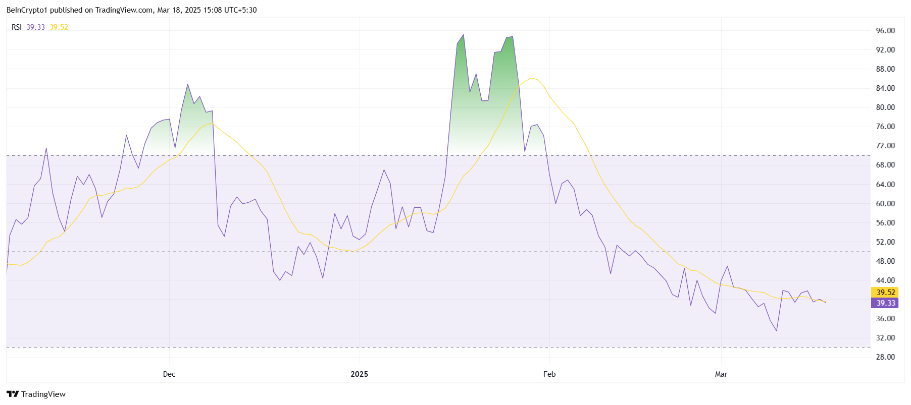 Загальні ринкові умови залишаються ведмежими, що пригнічує цінову динаміку криптовалюти й обмежує потенціал для відновлення.