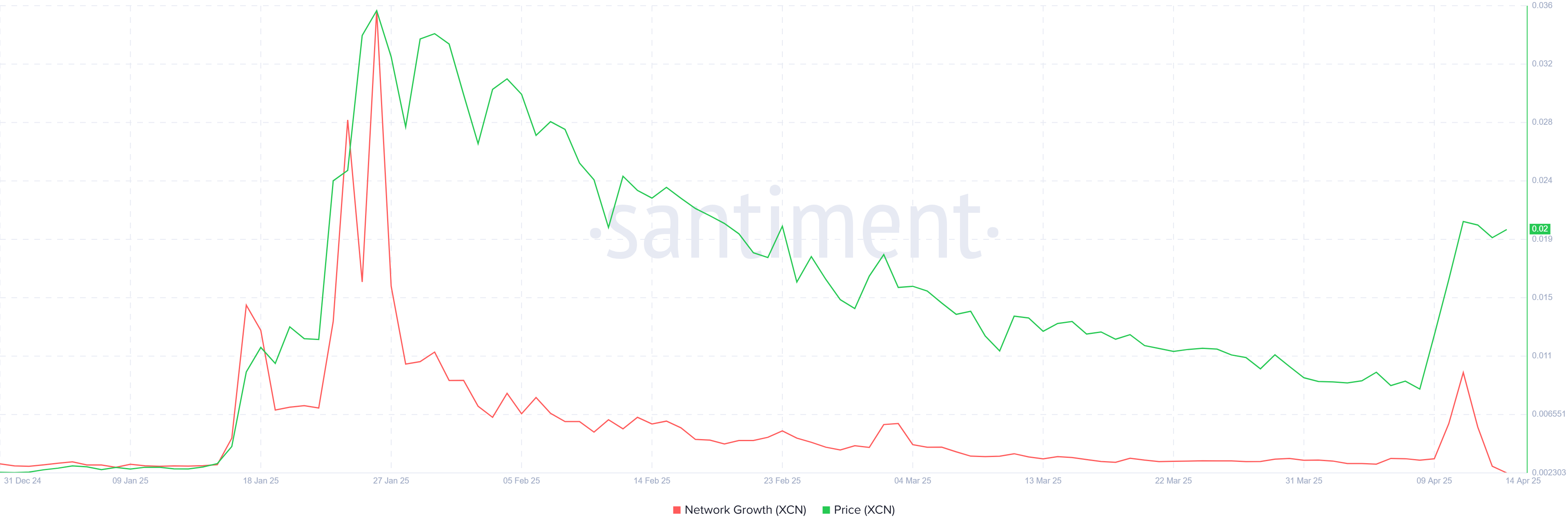 Ціна XCN зросла на 141% за останні сім днів, досягнувши 0,0202 доларів. Це вражаюче ралі наблизило токен до ключового рівня опору в 0,0237 доларів. Цей рівень виявився важким для прориву протягом останніх двох місяців, що робить його критичним пунктом для потенційного продовження альткоїна.
