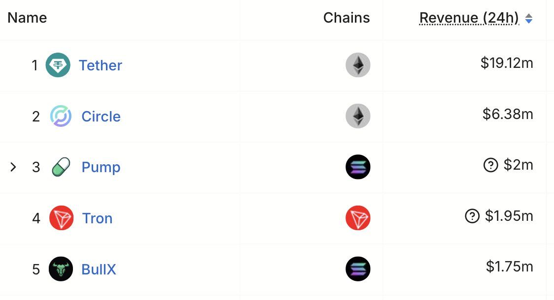 SponsoredPump.fun перевершує Tron за щоденним доходом, поступаючись лише гігантам стейблкоїнів.