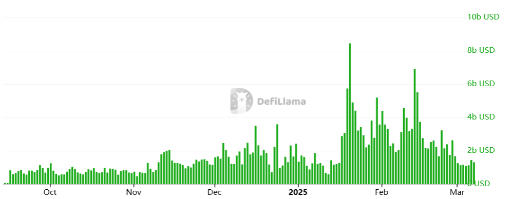Більше того, ринкова капіталізація мемкоїнів у березні скоротилася майже на 60% від грудневого піку, знизившись із 137 мільярдів доларів до 55 мільярдів доларів. Торгова лихоманка мемкоїнів на DEX також слабшає. Це може стати викликом для PancakeSwap у найближчі місяці.