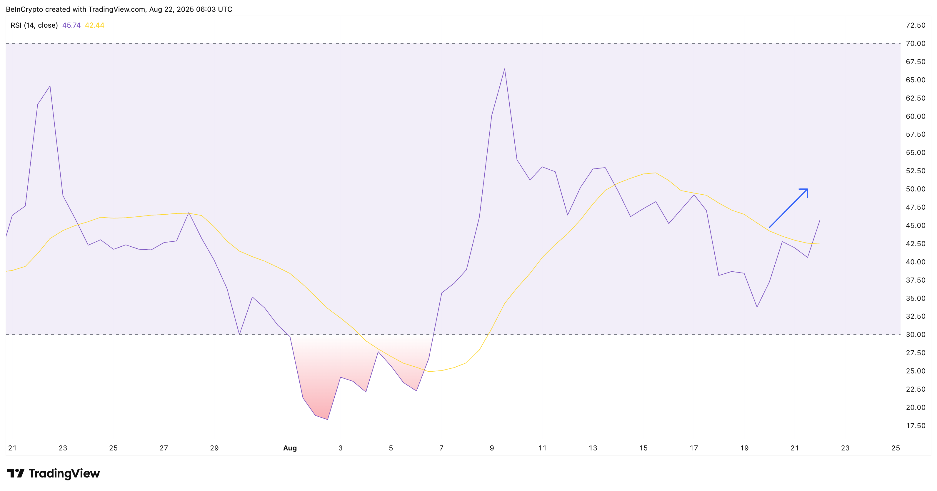 Патерн бик-ведмідь додає до бичачого погляду. Ведмежий імпульс ослаб після 20 серпня. Продавці намагалися продовжити втрати, але тиск знизився 21 і 22 серпня. У той же час, настрій покращився з запуском пари PI/USDC на OKX, що дало покупцям привід втрутитися.