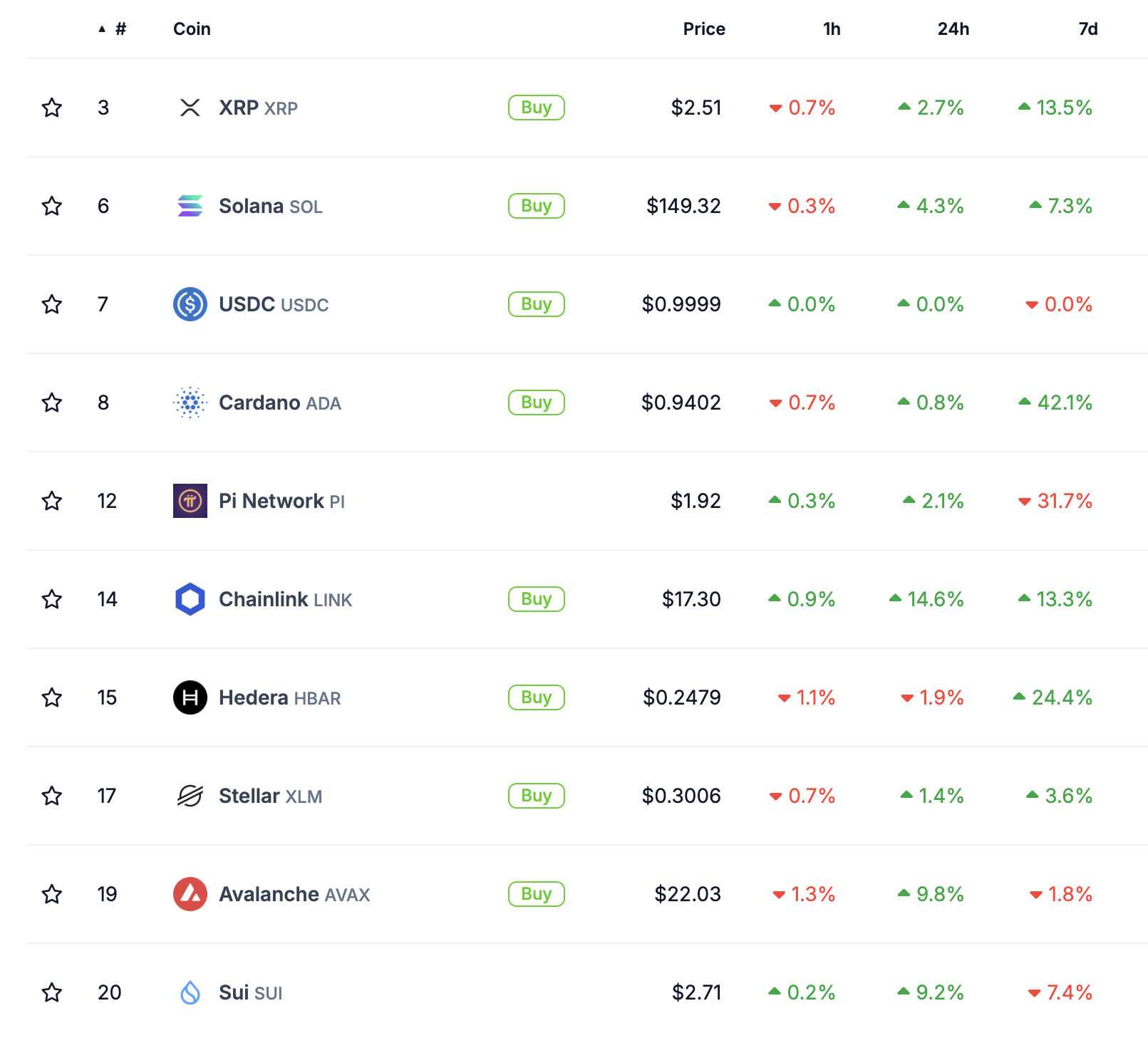 Це ще не все. Після недавнього входження до топ-рейтингу CoinMarketCap, Pi зайняв місце у топ-5 категорії “Made in USA Coins” на CoinGecko. Він перевершив Chainlink (LINK), Hedera (HBAR) та Stellar (XLM), ставши п’ятим за величиною альткоїном у цій категорії.