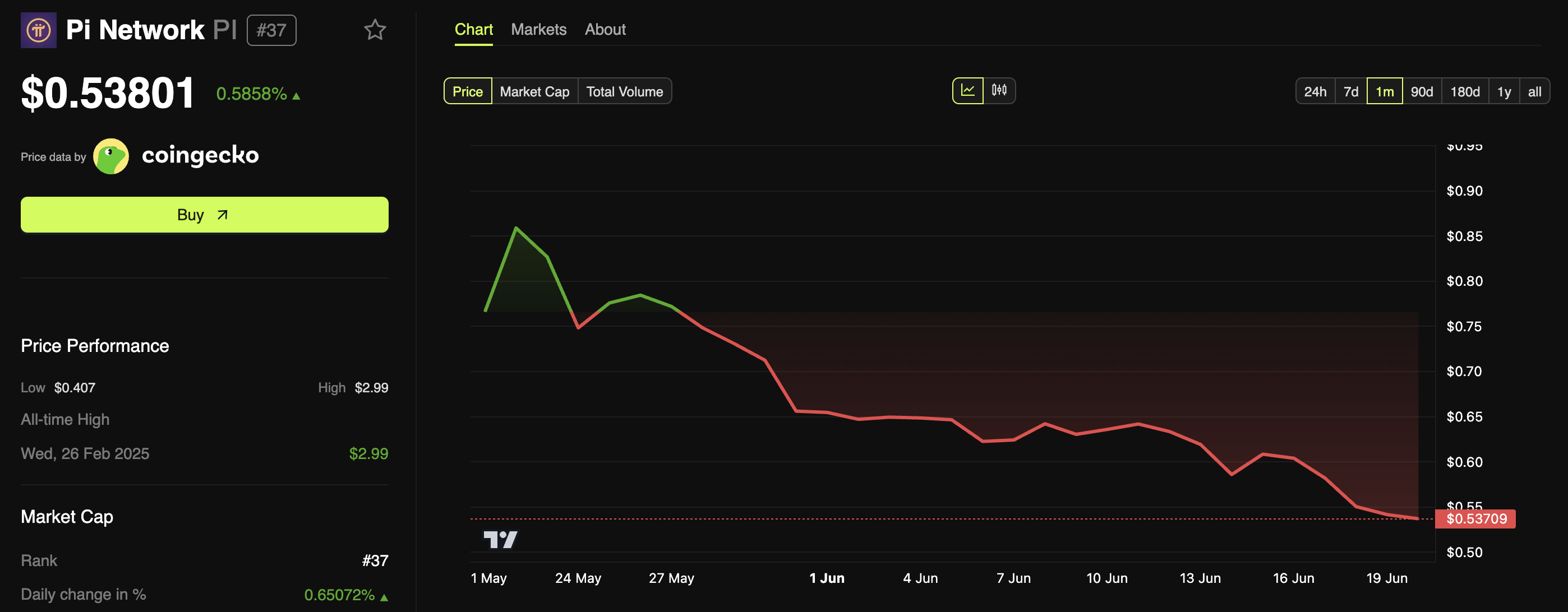 Тим часом, оголошення команди позитивно вплинуло на ціну Pi Coin. За останню добу його вартість зросла на 0,58 %, довівши торгову ціну до 0,53 доларів на момент публікації.