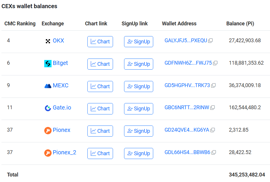 Згідно з даними Piscan, кількість токенів Pi, що зберігаються на централізованих біржах (CEX), значно зросла: з 263 мільйонів токенів на початку березня до 284 мільйонів у травні. Зараз ця кількість становить 345 мільйонів токенів, що є зростанням на понад 30 % лише за три місяці.