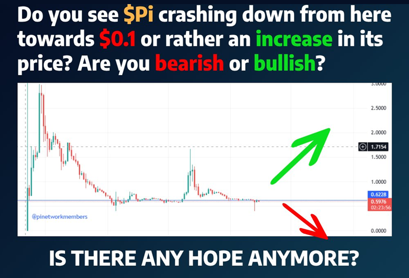 Акаунт X Pinetworkmember заявив, що Pi Network знаходиться на критичному етапі. Згідно з аналізом, ціна PI може впасти до 0,1 долара або різко піднятися до 1,7 долара. Результат залежатиме від ринкових факторів та реакції спільноти. Проте аналітик схиляється до ведмежого сценарію.