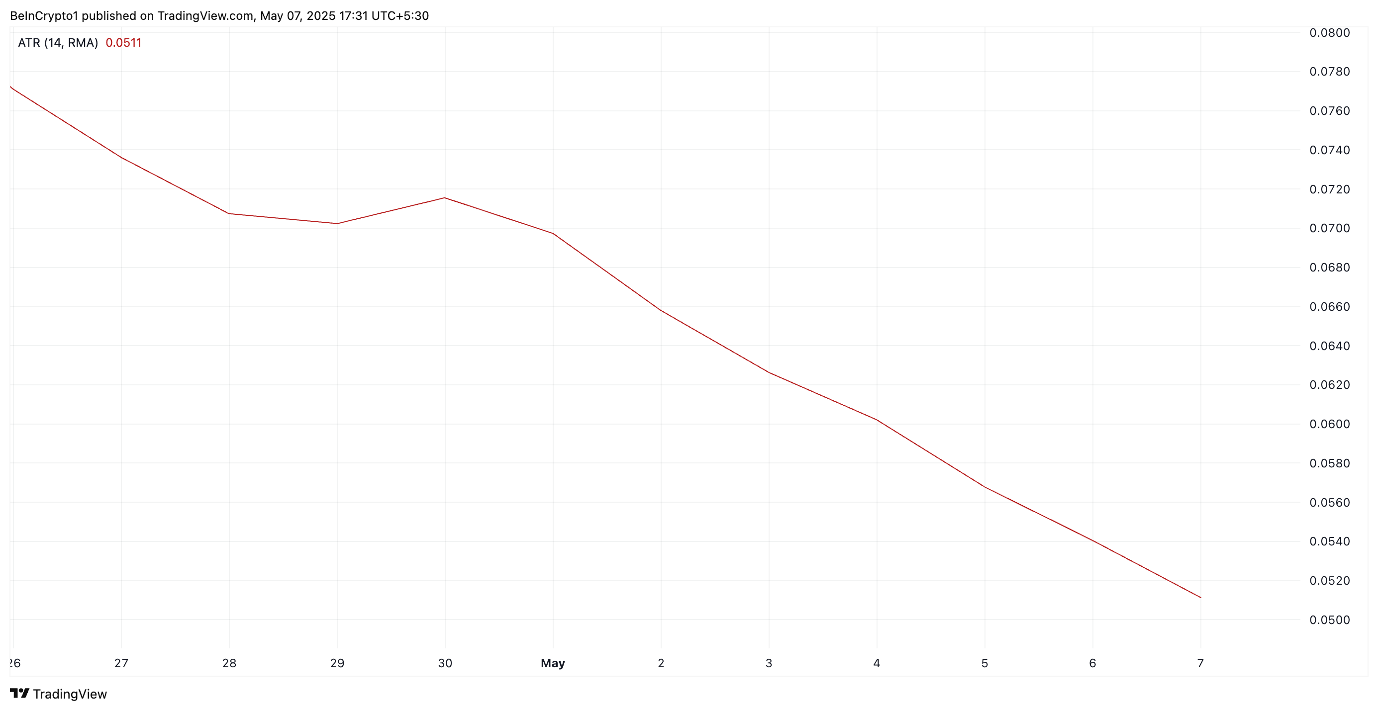 Індикатор ATR вимірює ступінь руху ціни за певний період. Коли він знижується, це часто свідчить про те, що коливання цін звужуються, а моментум слабшає.