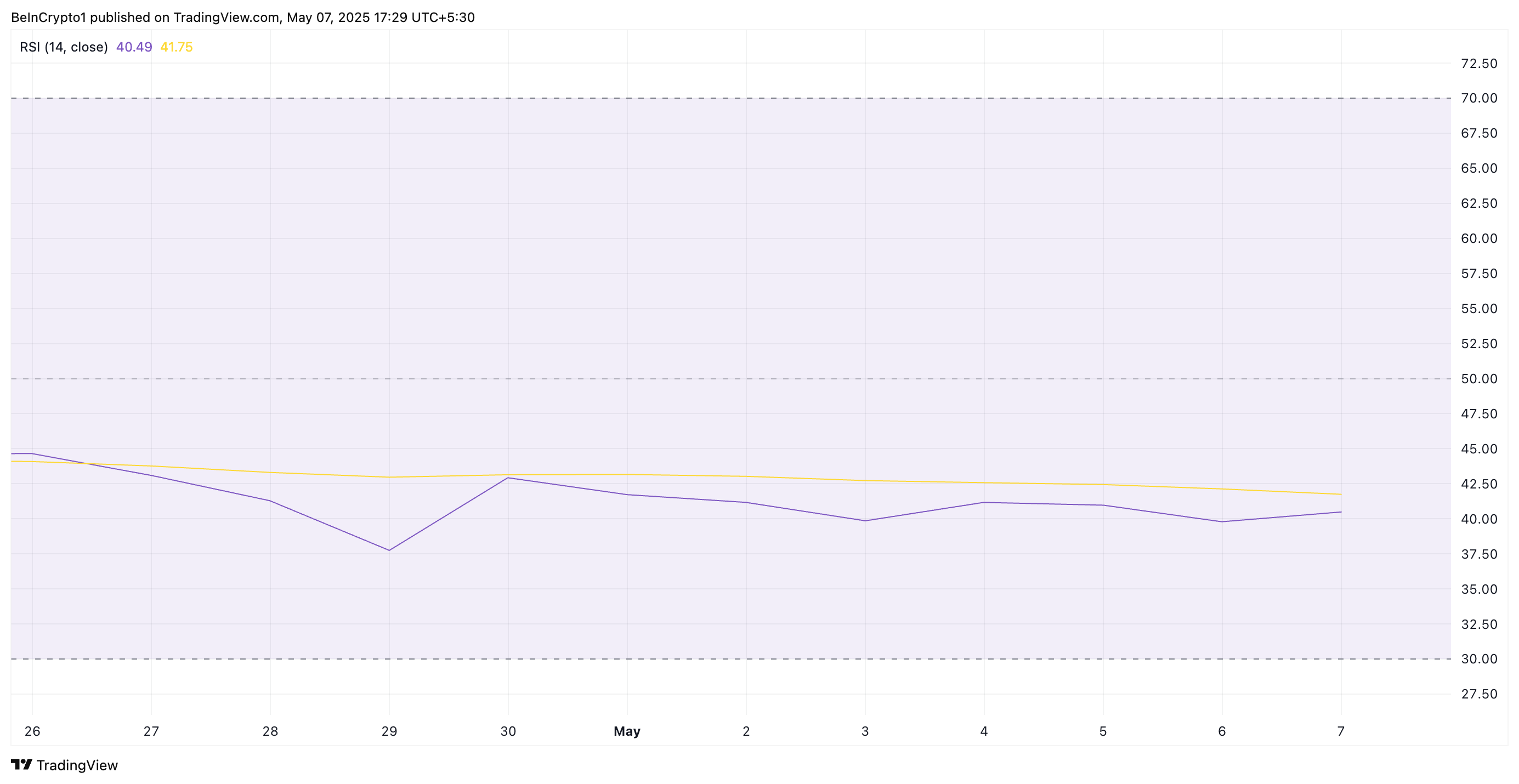 SponsoredЦе підкреслює відносний баланс між тиском купівлі та продажу на ринку. На момент публікації індикатор моментуму становить 40,49.