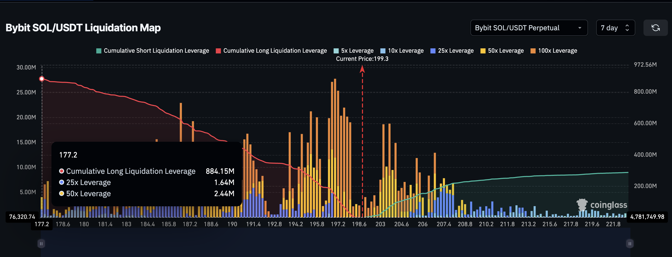 Якщо Solana втратить підтримку в $179 (майже 10% від поточного рівня), денне закриття нижче цього рівня може відправити її до $168. Це, можливо, спровокує практично всі лонги, як згадувалося раніше. Однак перший ключовий рівень тут становить $188, оскільки навіть це дозволило б ліквідувати лонги на майже 548 млн.