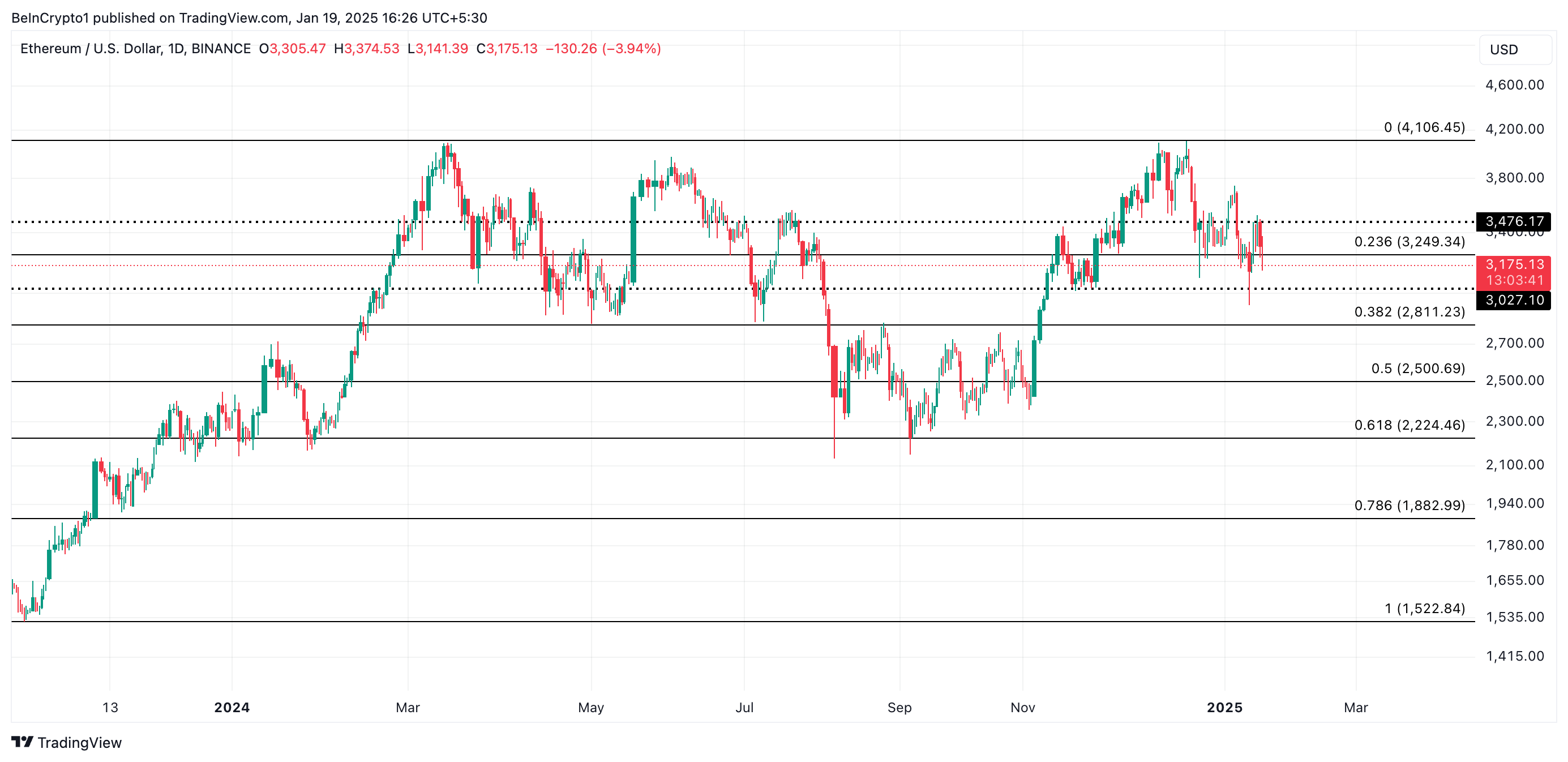 Однак, якщо ринкові настрої покращаться, це може підштовхнути ціну ETH вище 3 249 доларів до 3 476 доларів.