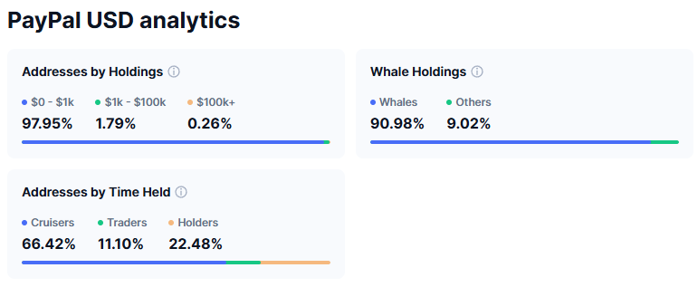 Однак загальне впровадження PYUSD залишається низьким, а його пропозиція є висококонцентрованою.