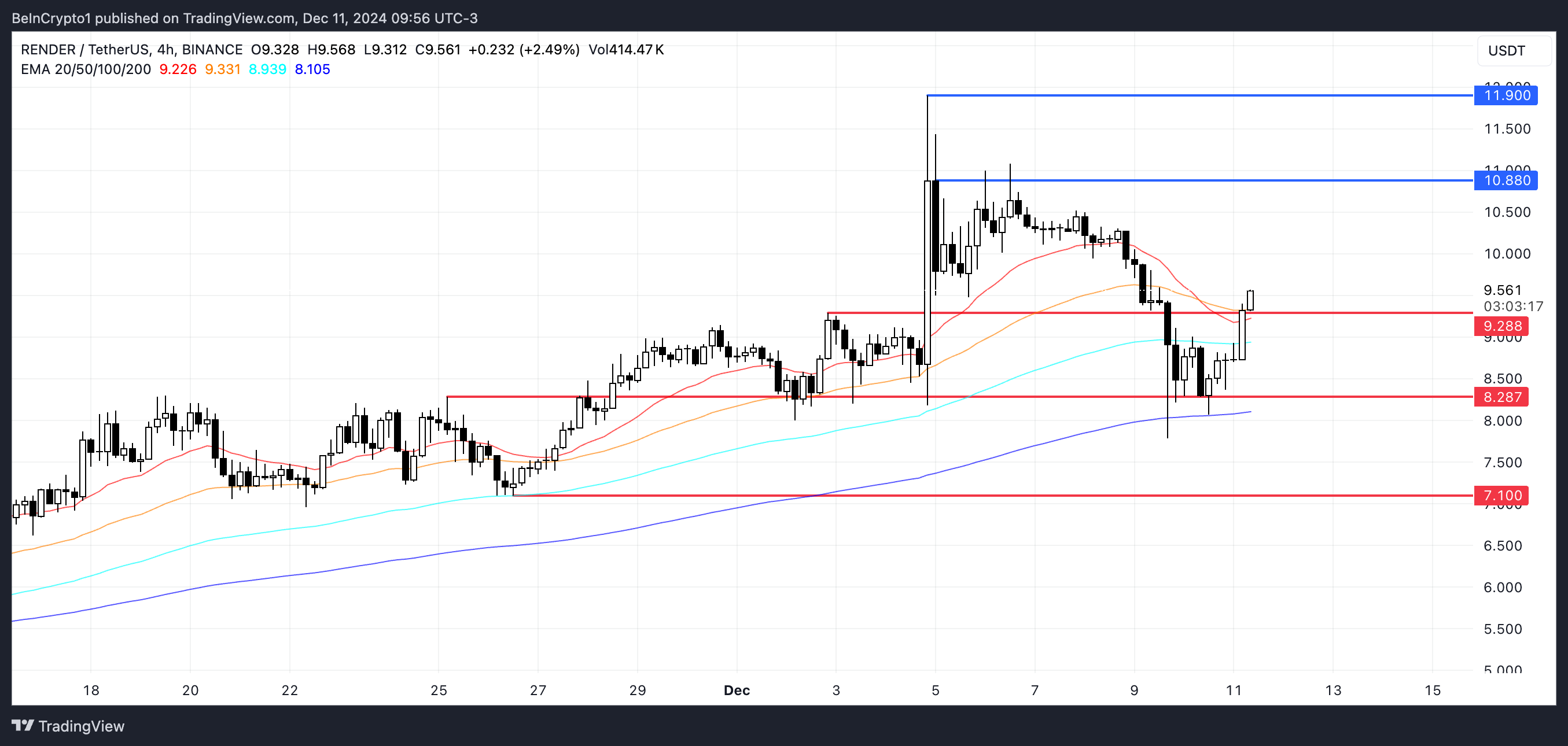 Незважаючи на цю можливість, дані від китів і BBTrend свідчать про наростання спадного імпульсу. Низхідний тренд може призвести до того, що ціна RENDER протестує підтримку на рівні $9,2, і якщо цей рівень не витримає, ціна може знизитися до $8,2 або навіть $7,1.