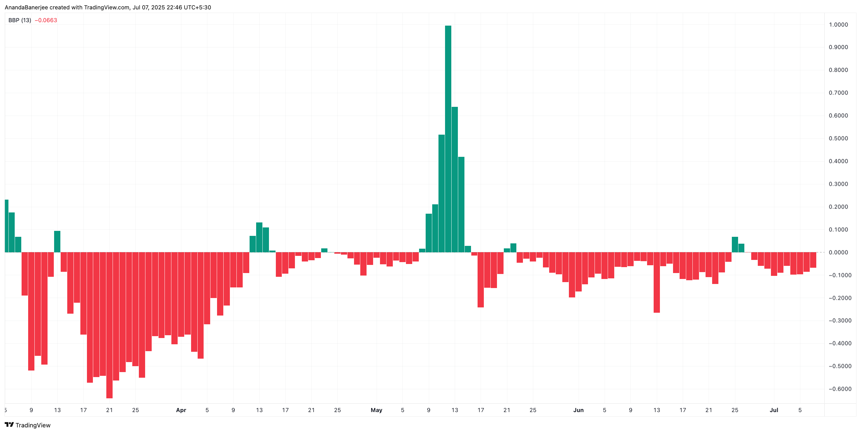 Індекс Елдера Рея малює заплутану картину. Бики залишаються здебільшого мовчазними, а Ведмежа Сила все ще показує постійні червоні стовпчики. Проте ці стовпчики без нових сплесків, що може призвести до певного оптимізму.