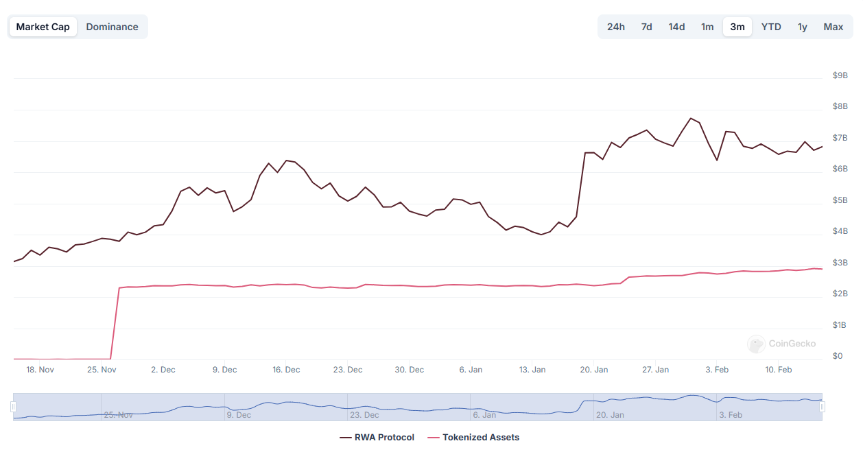Сектор реальних активів (RWA) зазнав вибухового зростання в останні місяці, зокрема його загальна ринкова капіталізація та обсяг торгівлі зросли безпрецедентними темпами. За останні три місяці ринкова капіталізація токенів RWA зросла на 144% до 62,7 мільярдів доларів, тоді як загальна вартість токенізованих реальних активів досягла 17,3 мільярдів доларів, що на 13% більше за той самий період.
