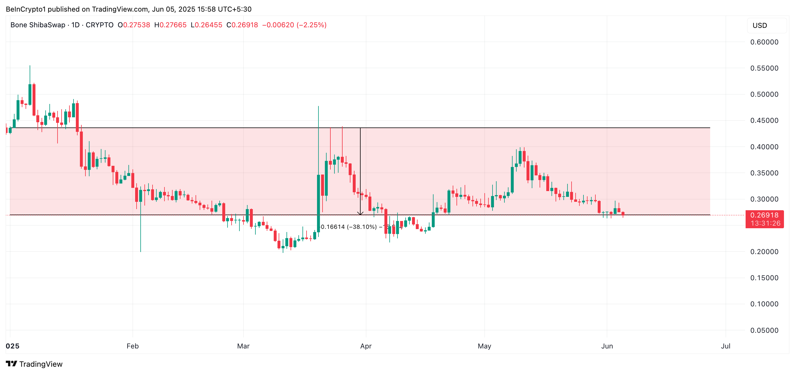 BONE слугує основним газовим токеном, полегшуючи транзакції та дозволяючи користувачам взаємодіяти на Shibarium. З меншою кількістю транзакцій, що відбуваються на L2, практична потреба в BONE як газі зменшилася. Ця відсутність корисності на ланцюгу вплинула на ринкову продуктивність токена, що впала на 38 % з початку року.