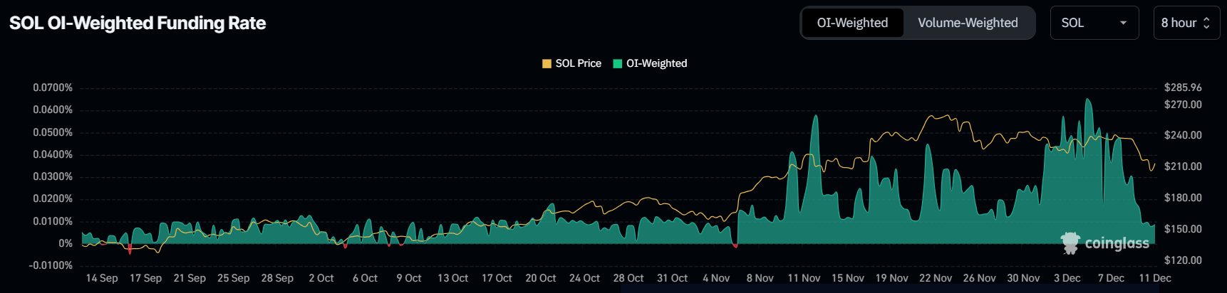 Ставка фінансування для Solana знизилася на 81% за останні 48 годин, що свідчить про погіршення оптимістичних настроїв. Позитивна ставка фінансування зазвичай вказує на домінування довгих позицій на ринку, що сигналізує про оптимізм серед трейдерів. Проте, коли ставка продовжує знижуватися, це відображає зростаючі побоювання, оскільки короткі контракти набирають популярності, а трейдери очікують подальшого зниження цін.