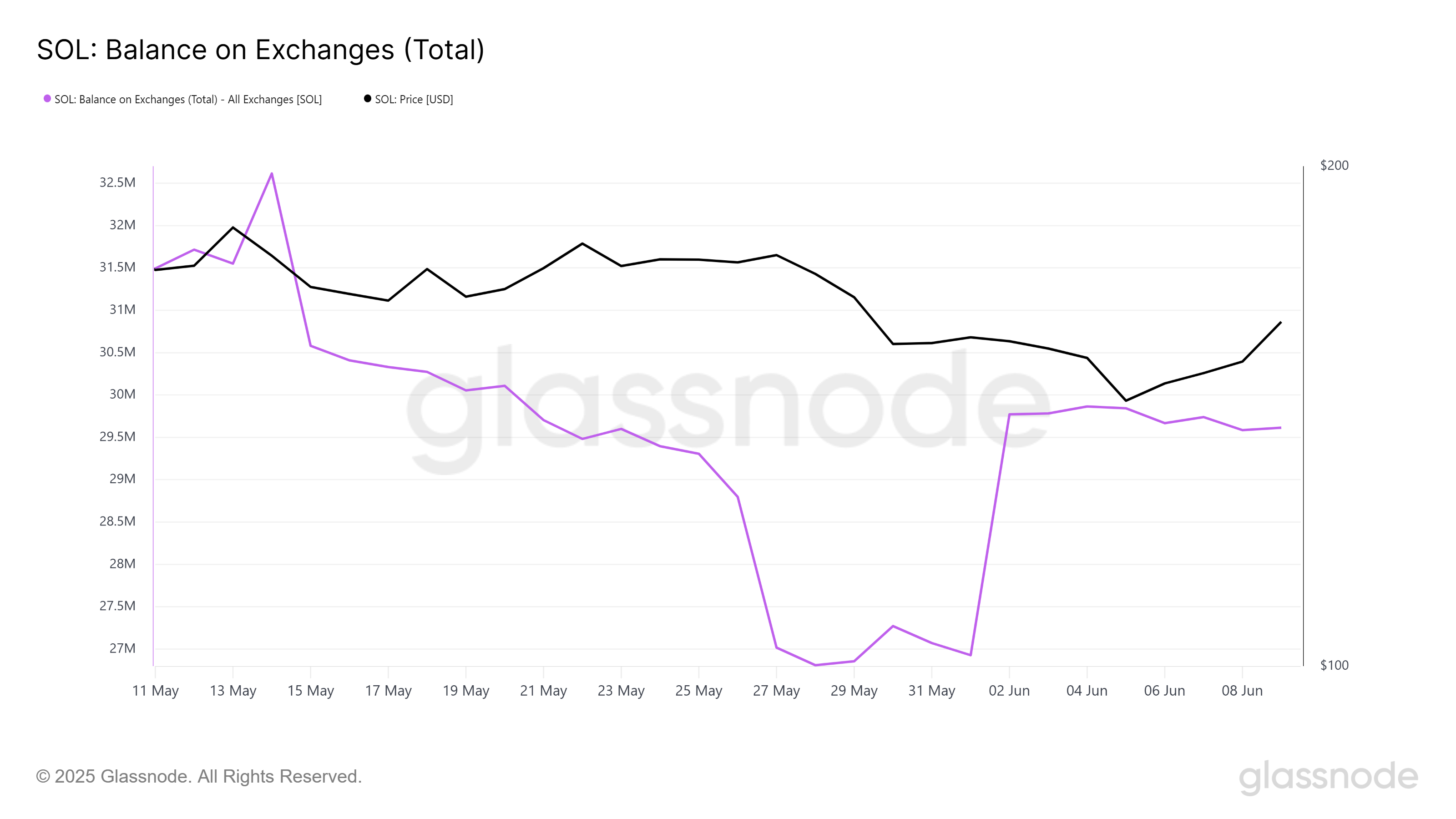 Баланс на біржах Solana показує приплив 2,7 мільйона SOL, вартістю понад 423 млн доларів, за останні дев’ять днів. Початкове зниження ціни цього місяця спонукало інвесторів продавати, перш ніж ситуація погіршиться, забезпечуючи свої позиції.
