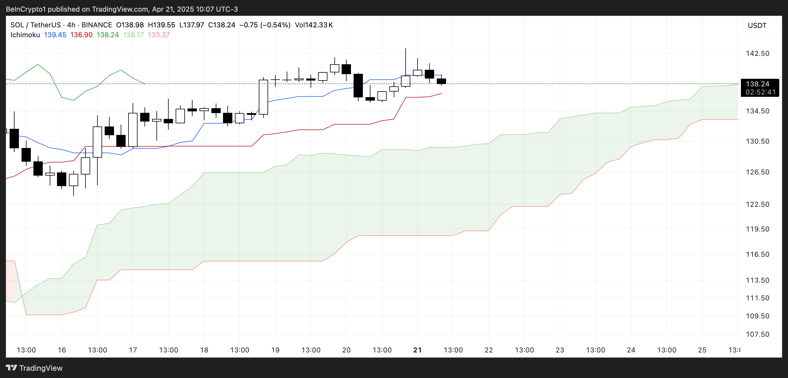 Якщо Solana знайде підтримку на Kijun-sen і підніметься вище Tenkan-sen, висхідний тренд може відновити силу; в іншому випадку може відбутися тест верхньої межі хмари.