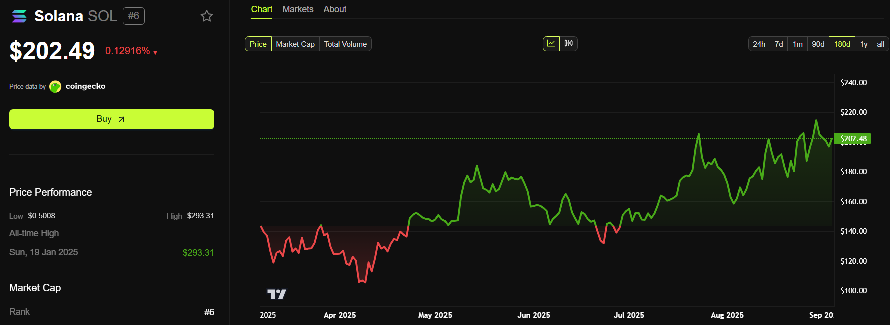 За даними BeInCrypto, незважаючи на падіння мережевої активності, ціна SOL піднялася з нижче $100 у квітні до понад $200.
