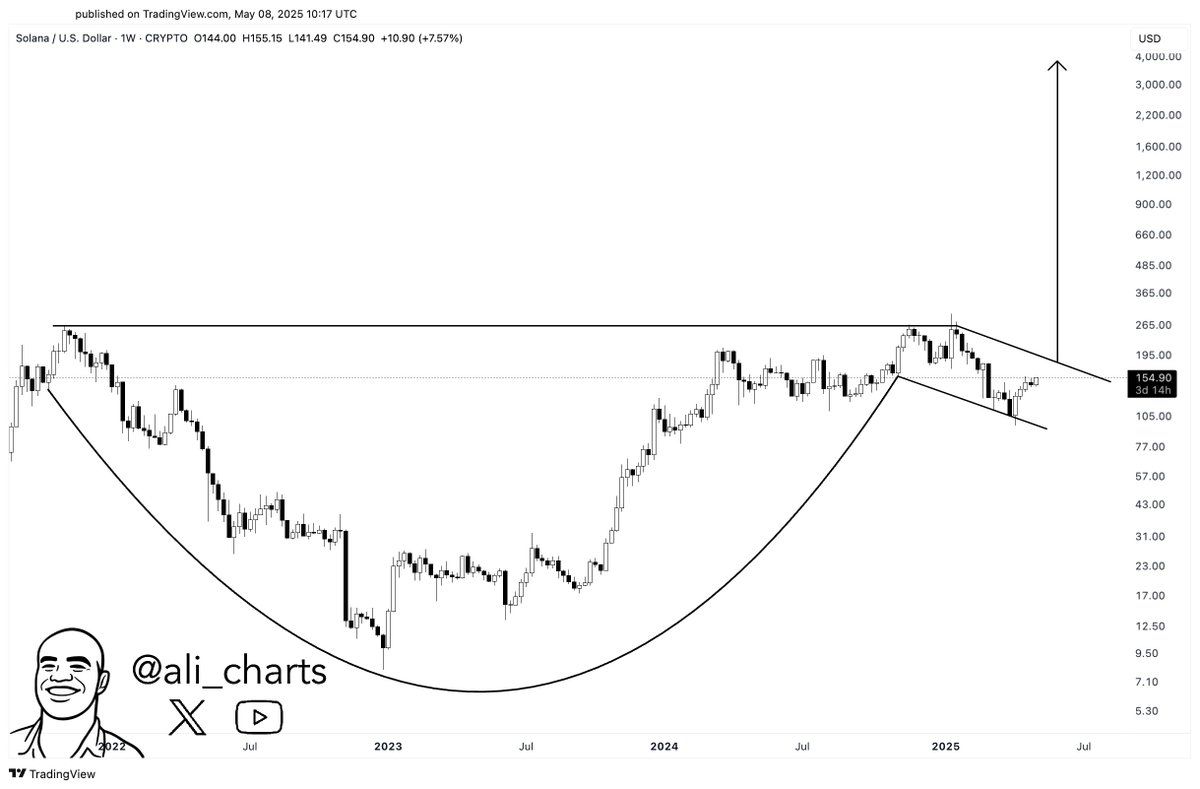 Інший аналітик запропонував, що SOL може бути недооцінено відносно своїх фундаментальних показників, на основі доходів мережі та активності в DeFi. Аналітик Алі також зазначив, що якщо SOL перевищить позначку в 200 доларів, може розпочатися значний бичачий ринок.