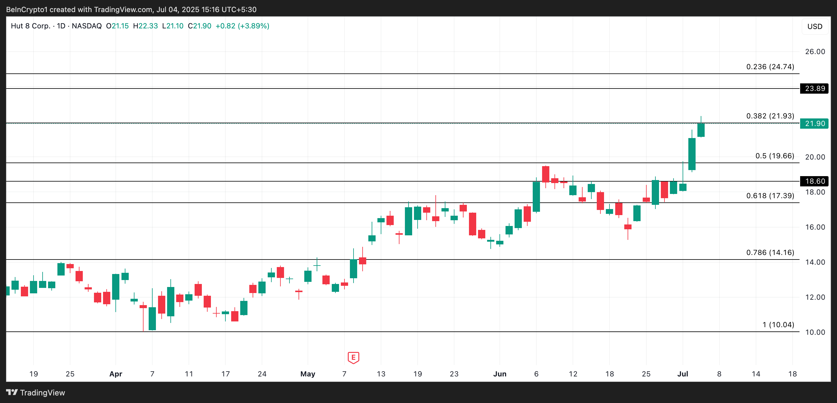 Вчора HUT закрився на рівні 21,90 доларів, відзначивши 5 % зростання за день. Якщо тиск покупців зросте на відкритті, HUT може піднятися до 21,93 доларів.