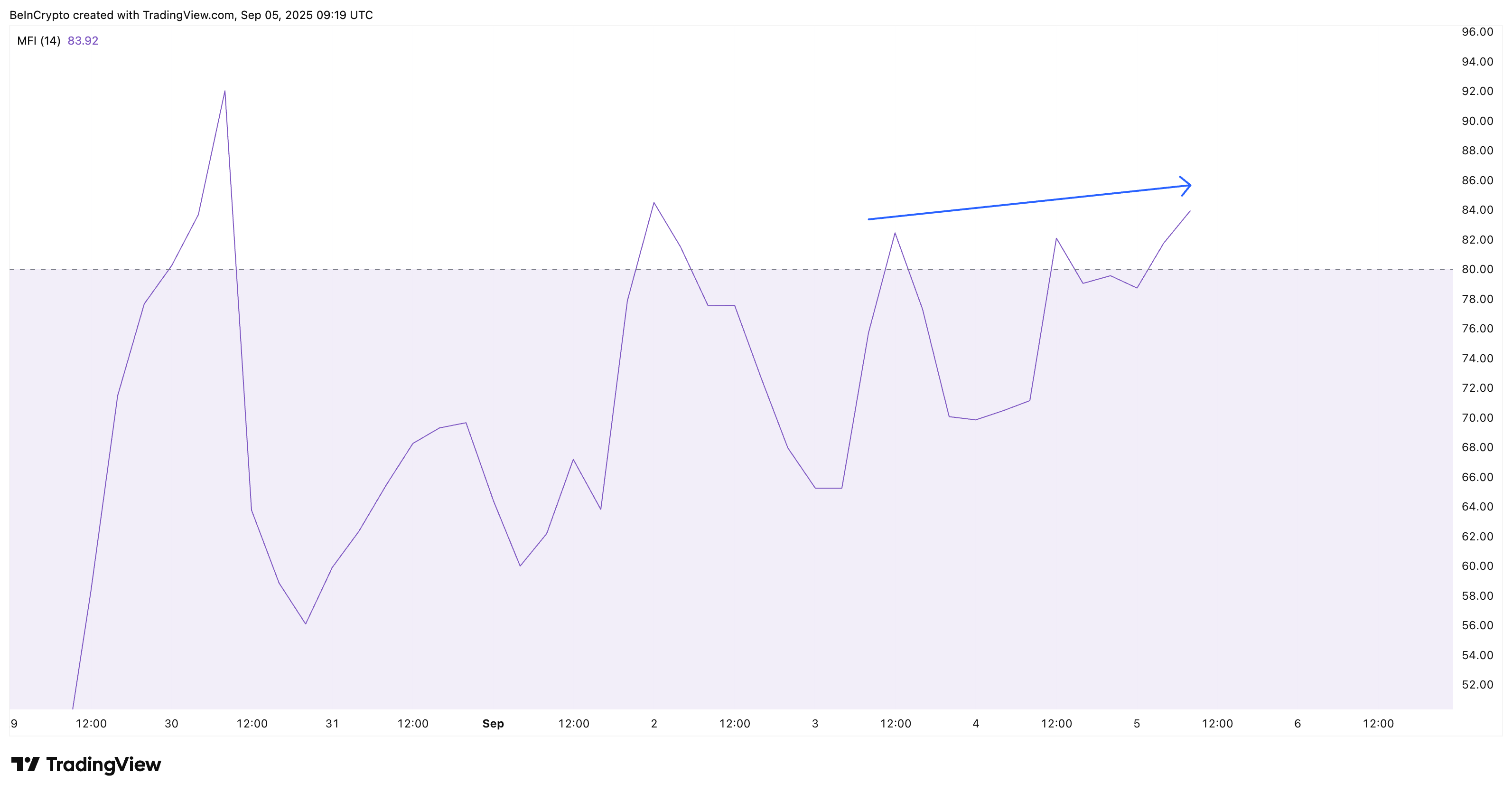 Індекс грошового потоку (MFI), який поєднує ціну та обсяг, щоб показати, чи гроші надходять або виходять, також демонструє силу. На 4-годинному графіку MFI піднявся вище 80 і встановлює вищі максимуми разом із ціною.