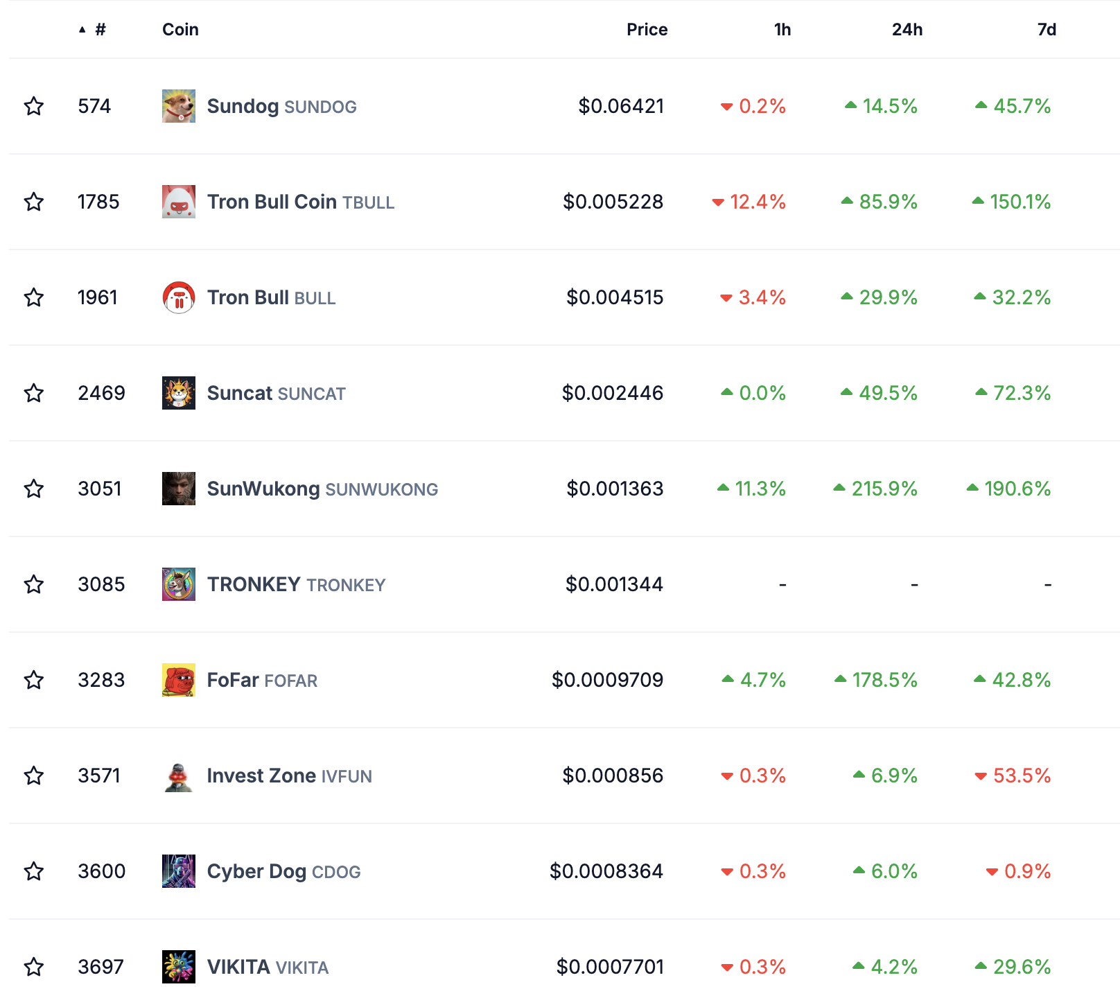 Крім того, більшість з топ-10 токенів в екосистемі показали значні прибутки за останній день. SunWukong (SUNWUKONG) та FoFar (FOFAR) очолили ралі, обидва зафіксували трицифрові відсоткові прирости.