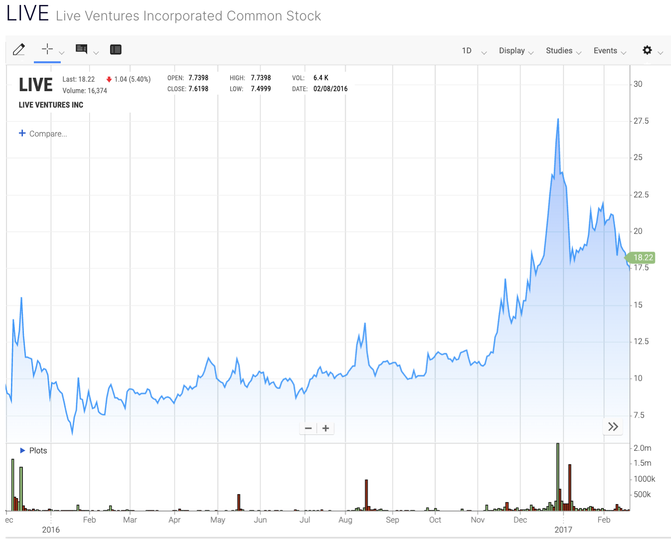 Sponsored«Live Ventures повідомила про рекордні 79 млн доларів доходу, що на 136 % більше, ніж у попередньому році, та чистий прибуток приблизно 17,82 млн доларів, що становить прибуток на акцію (EPS) у розмірі 8,92 долара», — йдеться у релізі.
