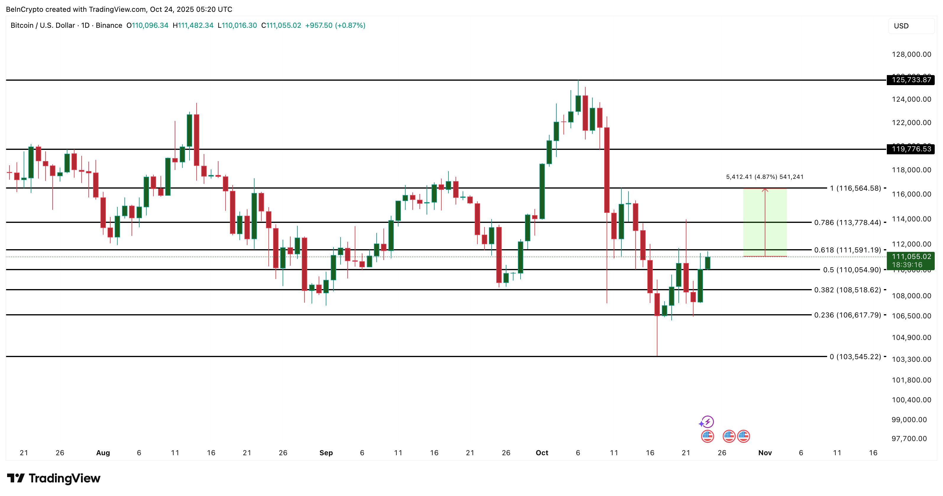 У період з 22 червня по 17 жовтня ціна біткойна сформувала вищі мінімуми, тоді як RSI надрукував нижчі мінімуми, і ця модель показує згасаючий тиск продажів, навіть якщо ціна залишається стабільною.