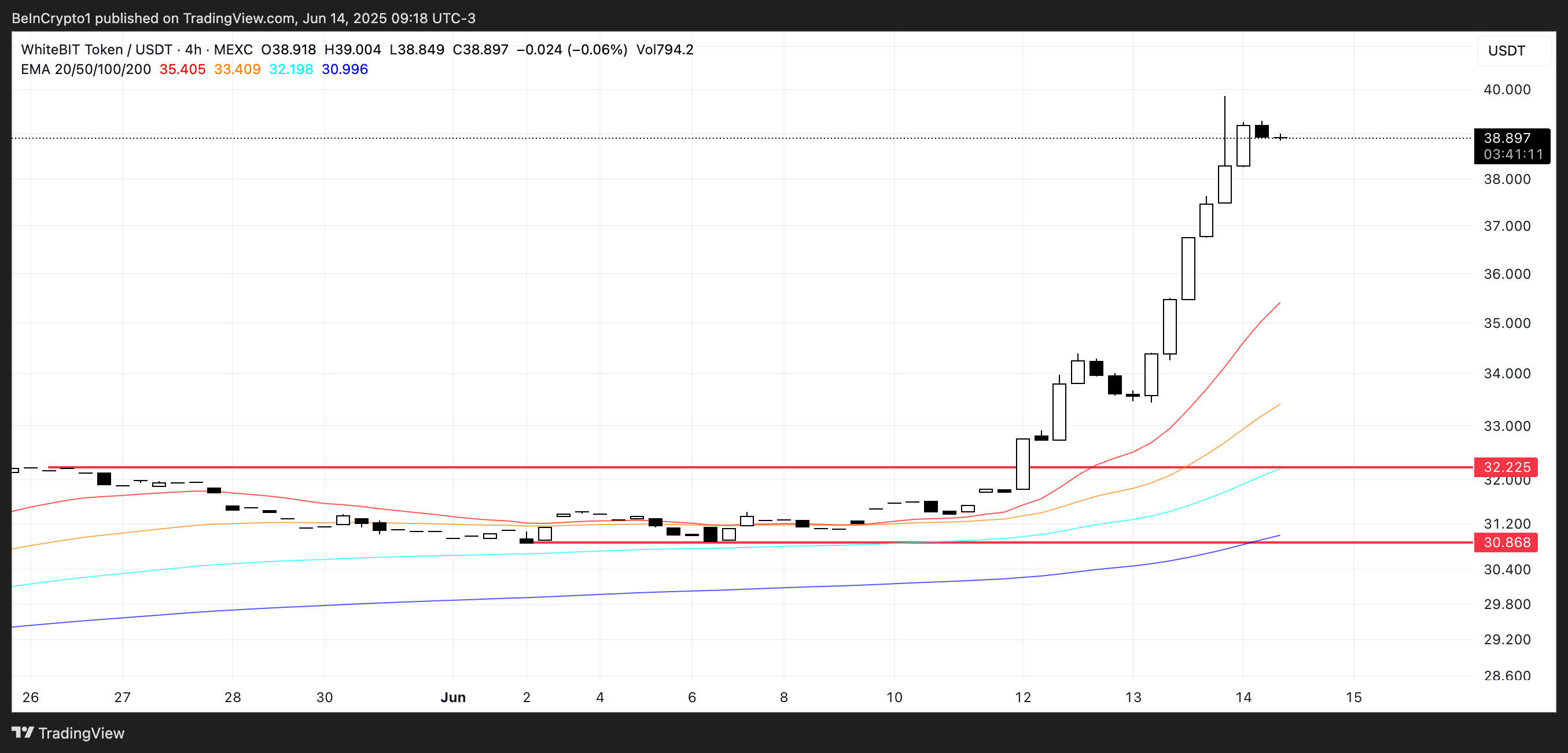 WhiteBIT Coin (WBT) протистояв загальному спаду ринку, встановивши новий історичний максимум понад 38 доларів, ставши найкращим токеном дня.