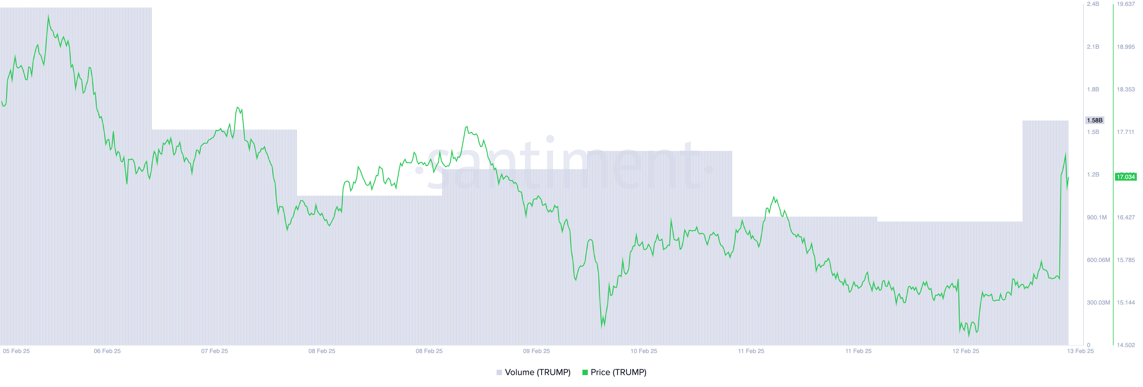 Поступове відновлення торгової активності на крипторинку призвело до двозначного зростання вартості TRUMP. На момент публікації токен торгується за 16,87 доларів.