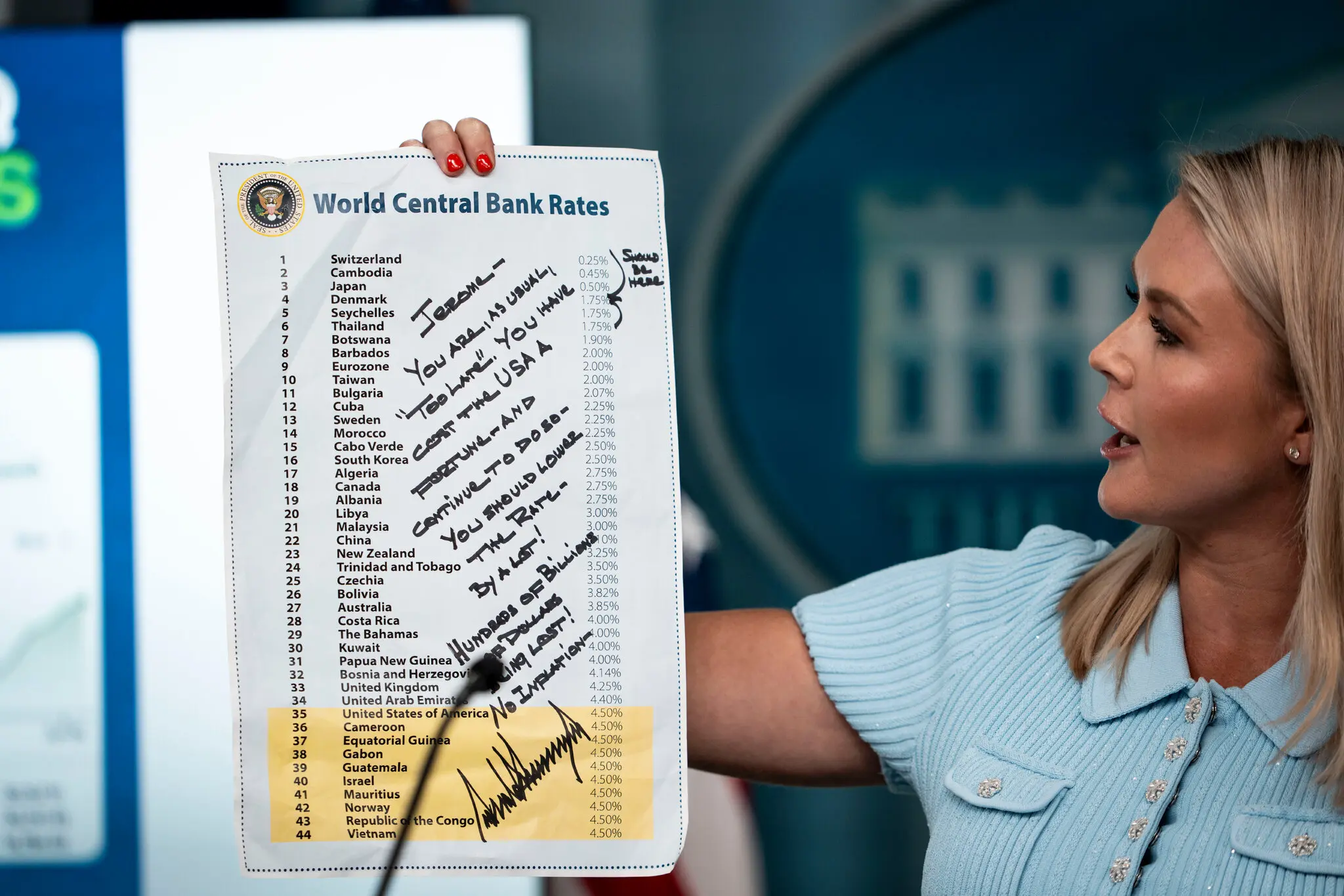 Наприклад, прес-секретарка Білого дому Каролайн Левітт обговорила Великий Прекрасний Закон на прес-конференції сьогодні, передаючи повідомлення Трампа про те, що він незадоволений Джеромом Пауеллом як головою ФРС.