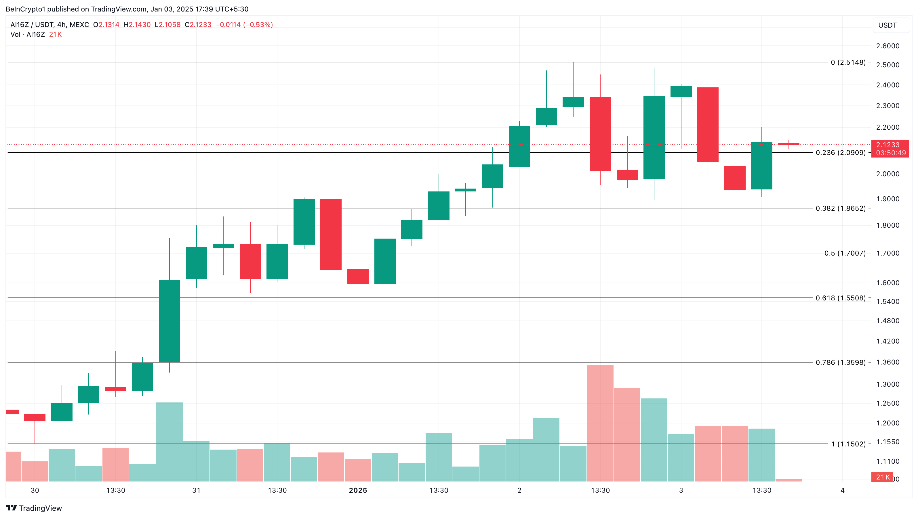 Якщо це буде підтримано значним обсягом покупок, ціна може повернутися до 2,51 USD. У дуже оптимістичному сценарії, ціна AI16Z може наблизитися до 2 USD.