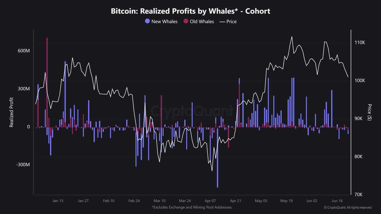 Між 14 та 22 червня кити реалізували приблизно 228 млн доларів збитків у біткоїні, за даними аналітика CryptoQuant JA Maartunn. Значний сплеск відбувся 17 червня, коли збитки склали 95 млн доларів за один день.