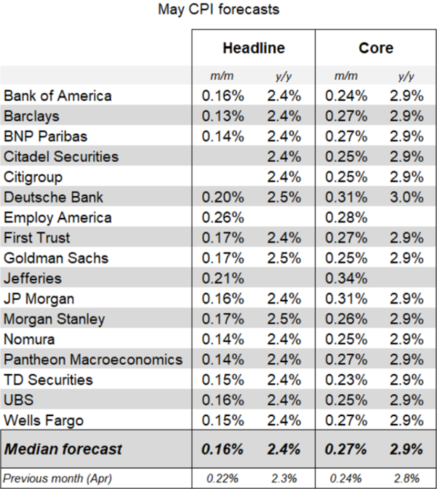 Перед випуском даних ІСЦ США консенсус очікував, що загальний показник зросте на 0,2 % місяць до місяця (MoM) і прискориться до 2,5 % рік до року (YoY).