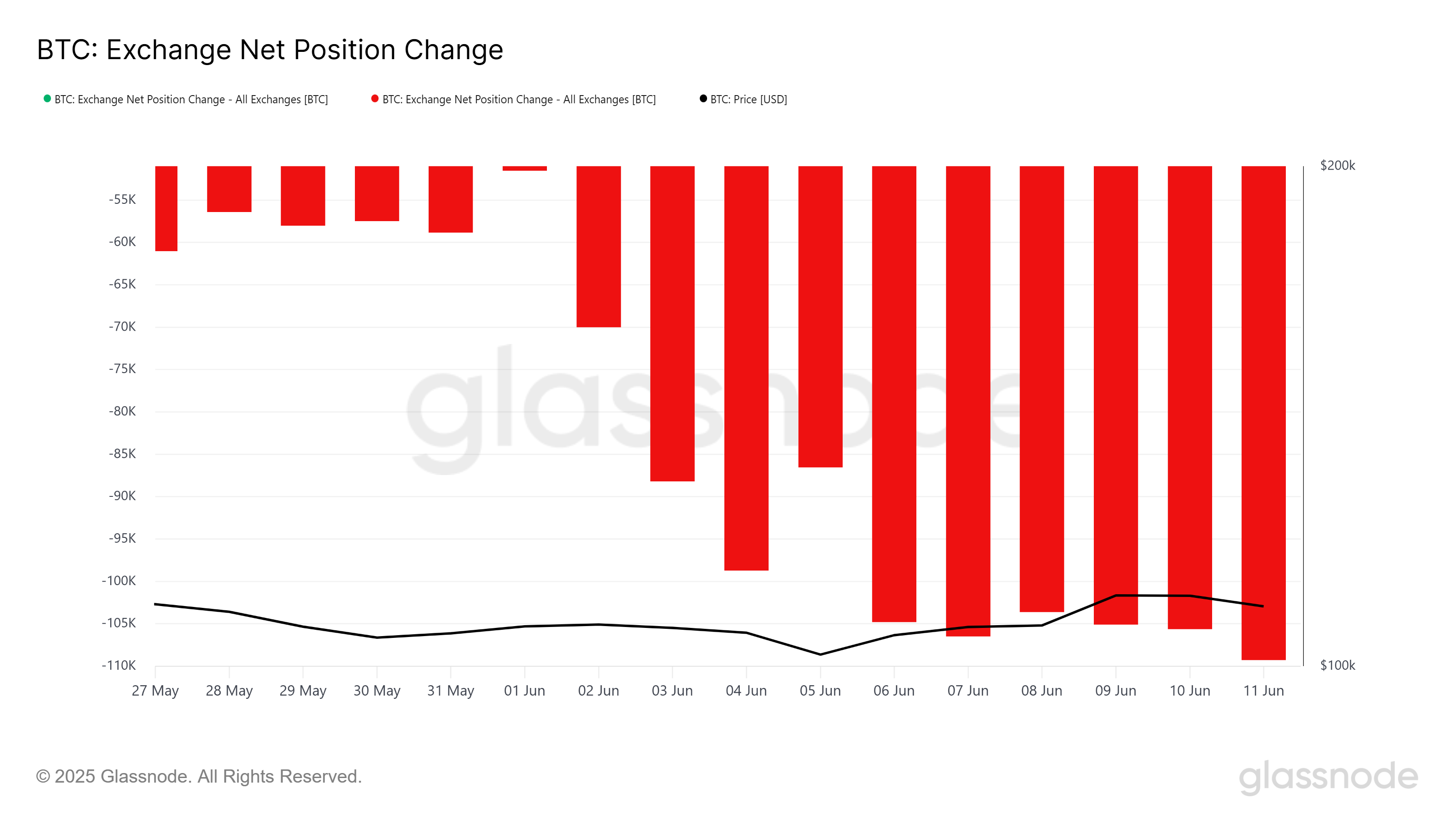 Настрої на ринку біткоїна все ще домінують оптимізмом, оскільки чисті позиції на біржах показують постійні відтоки протягом місяця. Незважаючи на невдачу подолати бар’єр у 110 000 доларів, інвестори продовжують додавати до своїх активів біткоїн, очікуючи подальшого зростання ціни. Цей тиск на купівлю свідчить про впевненість у довгостроковому потенціалі біткоїна, незважаючи на короткострокові невдачі.
