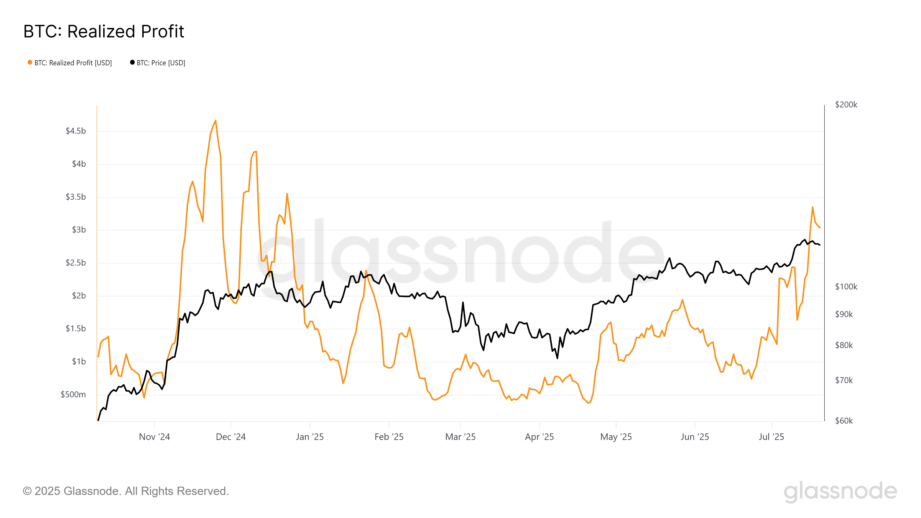 Реалізовані прибутки для біткоїна зросли до 7-місячного максимуму, що свідчить про зростаючу активність продажу серед інвесторів. Цей сплеск вказує на те, що власники фіксують прибутки, а не роблять ставки на подальше зростання. Така поведінка часто виникає, коли інвестори втрачають впевненість у продовженні бичачого імпульсу, що, здається, відбувається зараз.