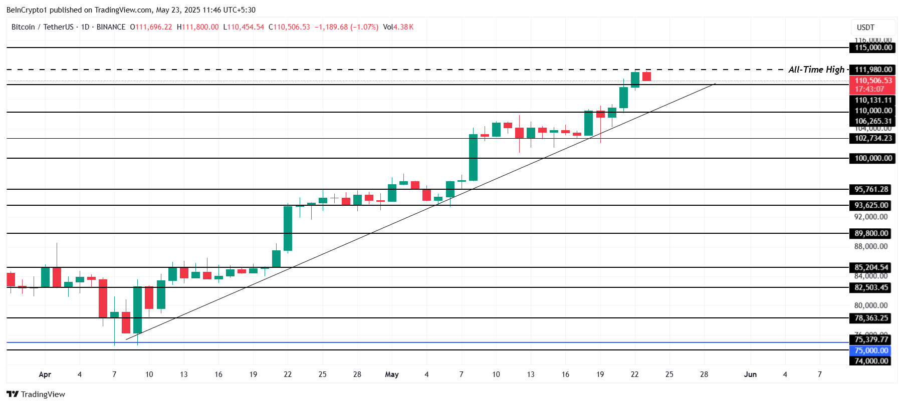 Біткоїн перебуває на шеститижневому висхідному тренді, піднявши ціну вище важливого психологічного бар’єра у 110 000 доларів.