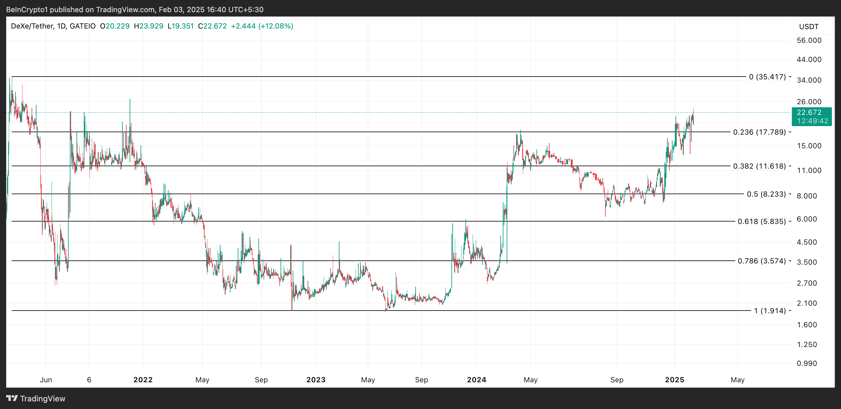 Якщо цей бичачий тиск збережеться і DEXE підтримуватиме свій висхідний тренд, він може піднятися до свого історичного максимуму в 35,41 доларів, якого він досягав у березні 2021 року.