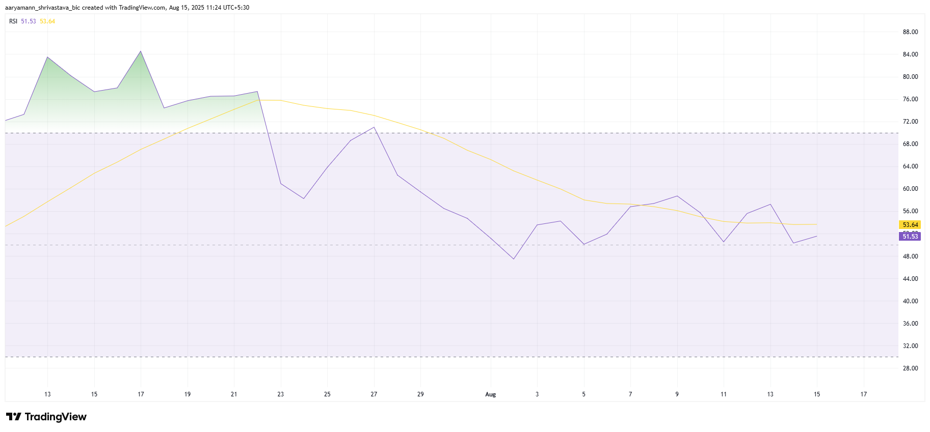 Ринковий імпульс для HBAR значною мірою залежить від зовнішніх факторів, при цьому альткоїн підтримується загальною тенденцією на крипторинку. Поки RSI залишається вище нейтрального порогу, існує шанс на прорив HBAR.