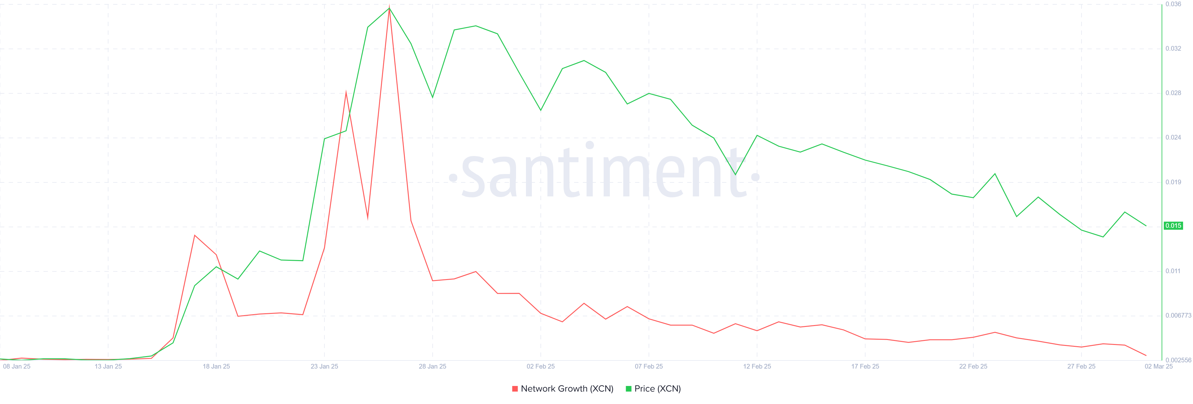 Однак, якщо нові настрої інвесторів залишаться слабкими, а роздрібний інтерес продовжить знижуватися, альткоїн може впасти через підтримку на рівні 0,0150 доларів. Це підштовхне XCN до 0,0127 доларів, що анулює оптимістичний прогноз.