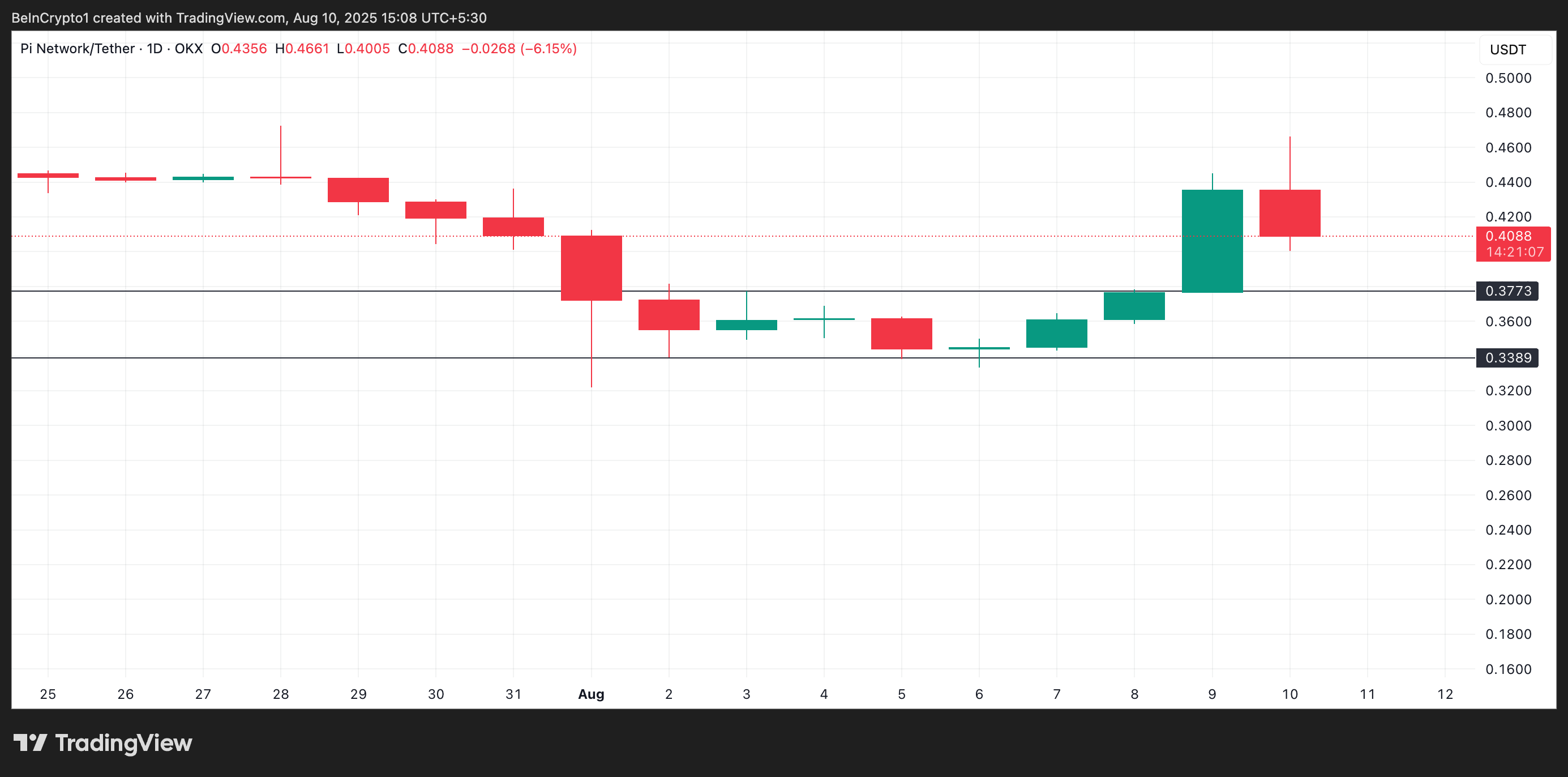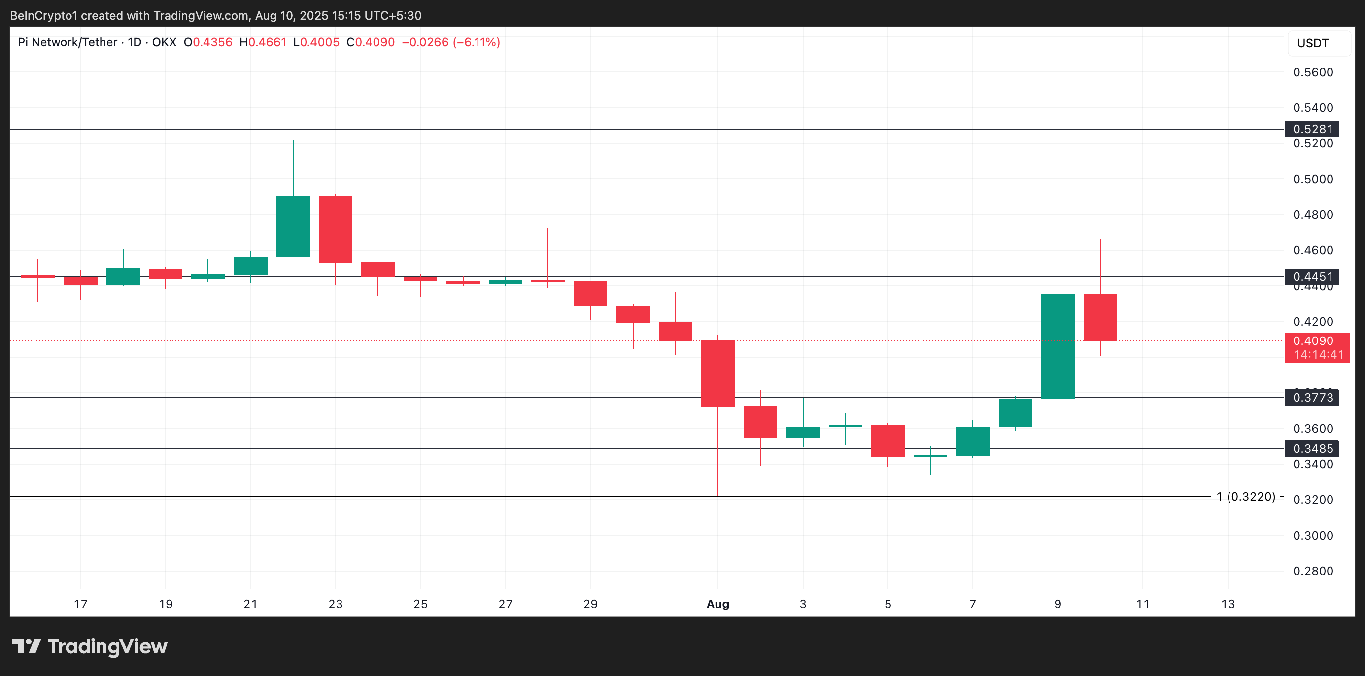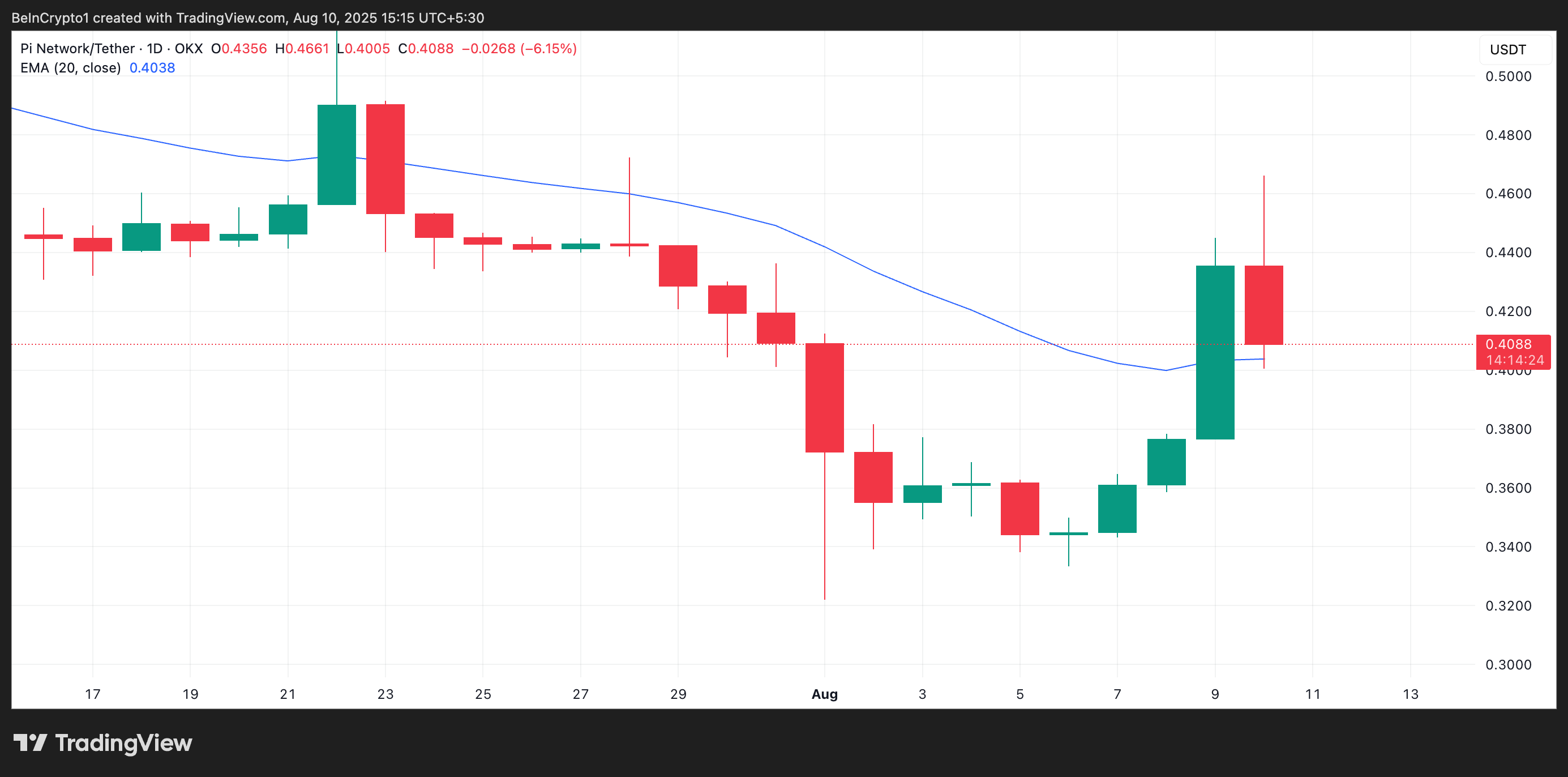 Крім того, ралі PI за останні дві сесії підняло його ціну вище 20-денної експоненційної змінної середньої (EMA), підтверджуючи зростаючий попит. На момент публікації ця ключова змінна середня утворює динамічну підтримку під ціною токена на рівні 0,4038 доларів.
