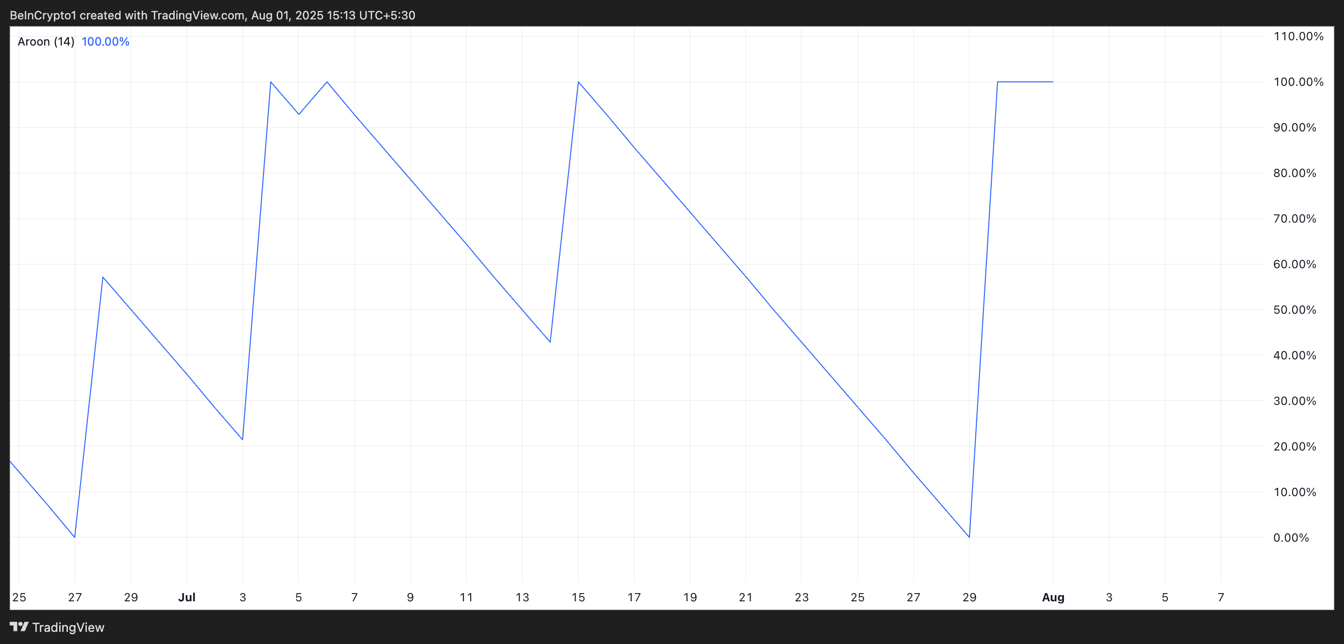 Технічні індикатори малюють таку ж похмуру картину. Лінія Aroon Down, яка вимірює силу недавніх низхідних трендів, наразі знаходиться на рівні 100% на щоденному графіку PI. Це сигналізує про те, що спад є сильним, і продавці міцно контролюють ситуацію.