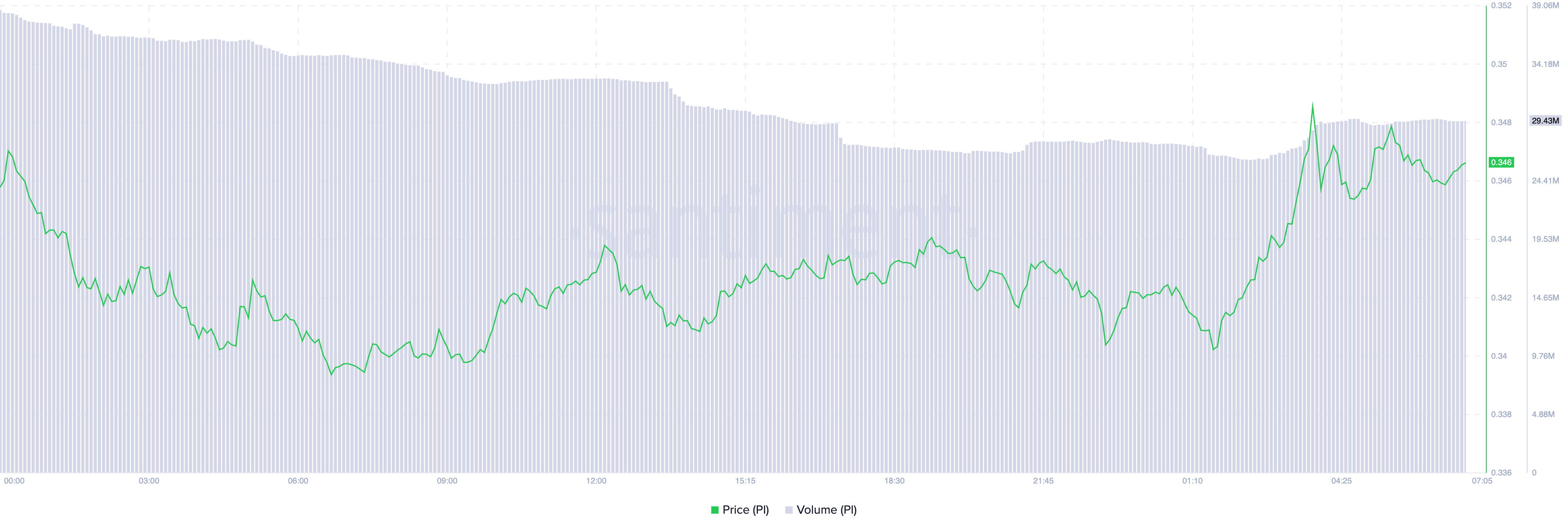 У таких випадках невелика кількість угод може підвищити ціну, але відсутність широкої участі свідчить про те, що ралі може бути нестійким. Для PI це означає, що хоча деякі інвестори купують, багато хто все ще вагається, що зберігає загальний імпульс ринку слабким.