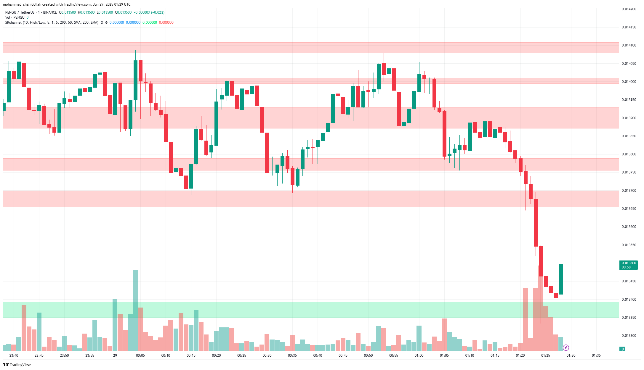 Ціна PENGU зросла майже на 30 % за останні 24 години, і токен наразі торгується близько 0,0134 доларів. Токен стикається з опором на рівні близько 0,014 доларів.