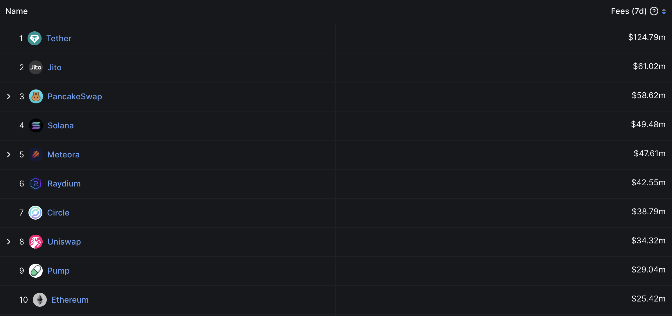 Raydium став одним з провідних протоколів блокчейну за доходами, заробивши понад 42 мільйони доларів за останні сім днів. Це ставить його попереду таких великих гравців, як Circle, Uniswap і навіть Ethereum за рівнем заробітку.
