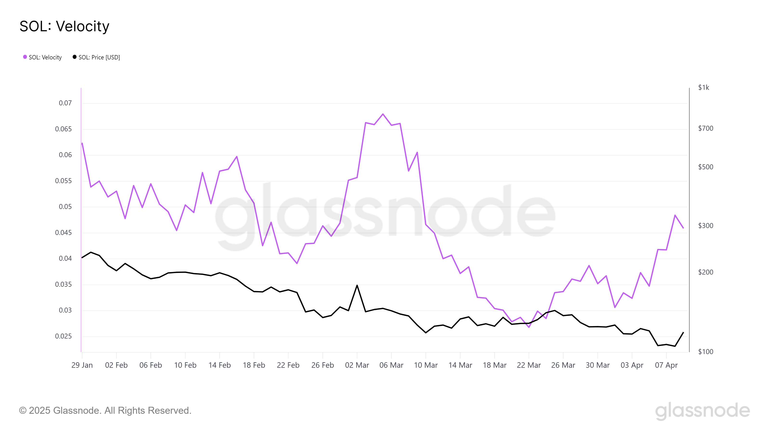 Одним з індикаторів, що демонструє перспективи для відновлення Solana, є її швидкість, яка вимірює темп, з яким токени циркулюють. Швидкість досягла місячного максимуму, що свідчить про прискорення транзакцій з постачанням.