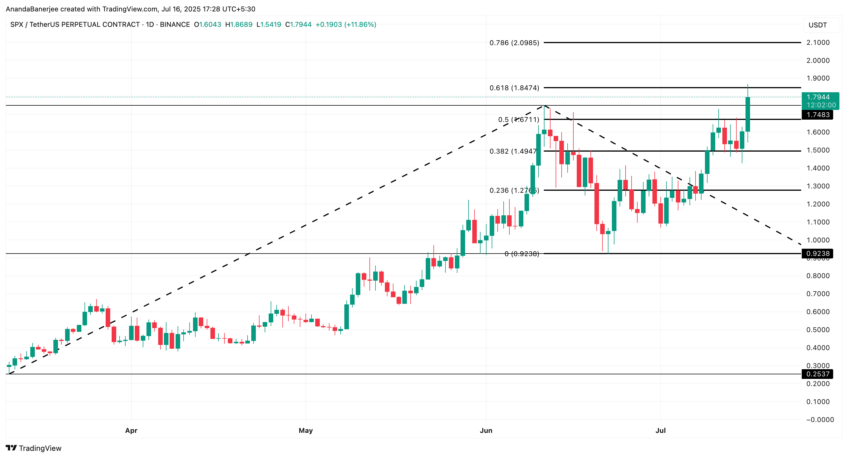 SPX6900, скориставшись імпульсом тези «Суперцикл мемкоїнів», нещодавно досяг нового історичного максимуму в $1,85, перш ніж відкотитися до $1,79.